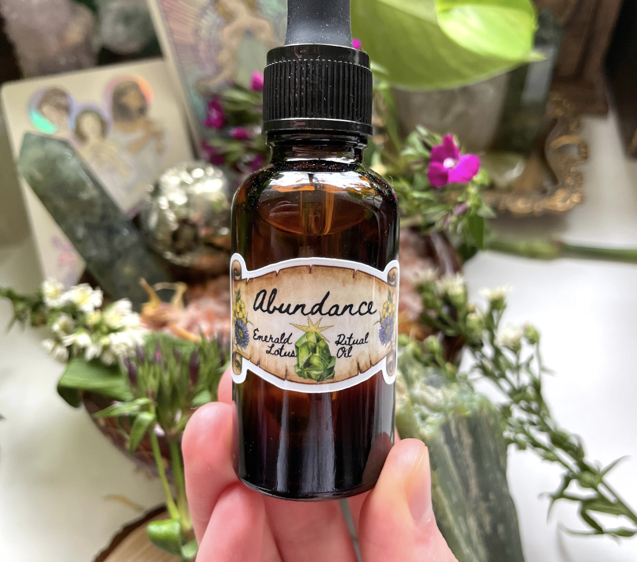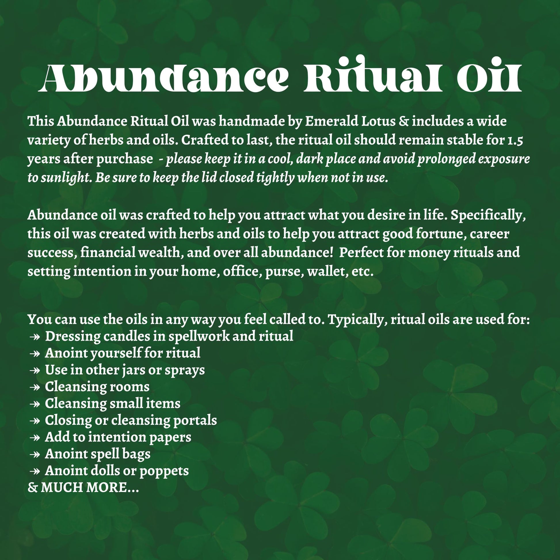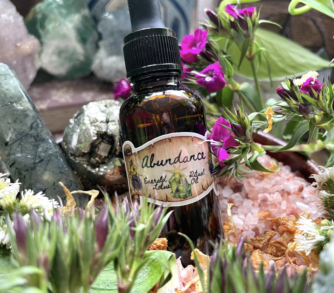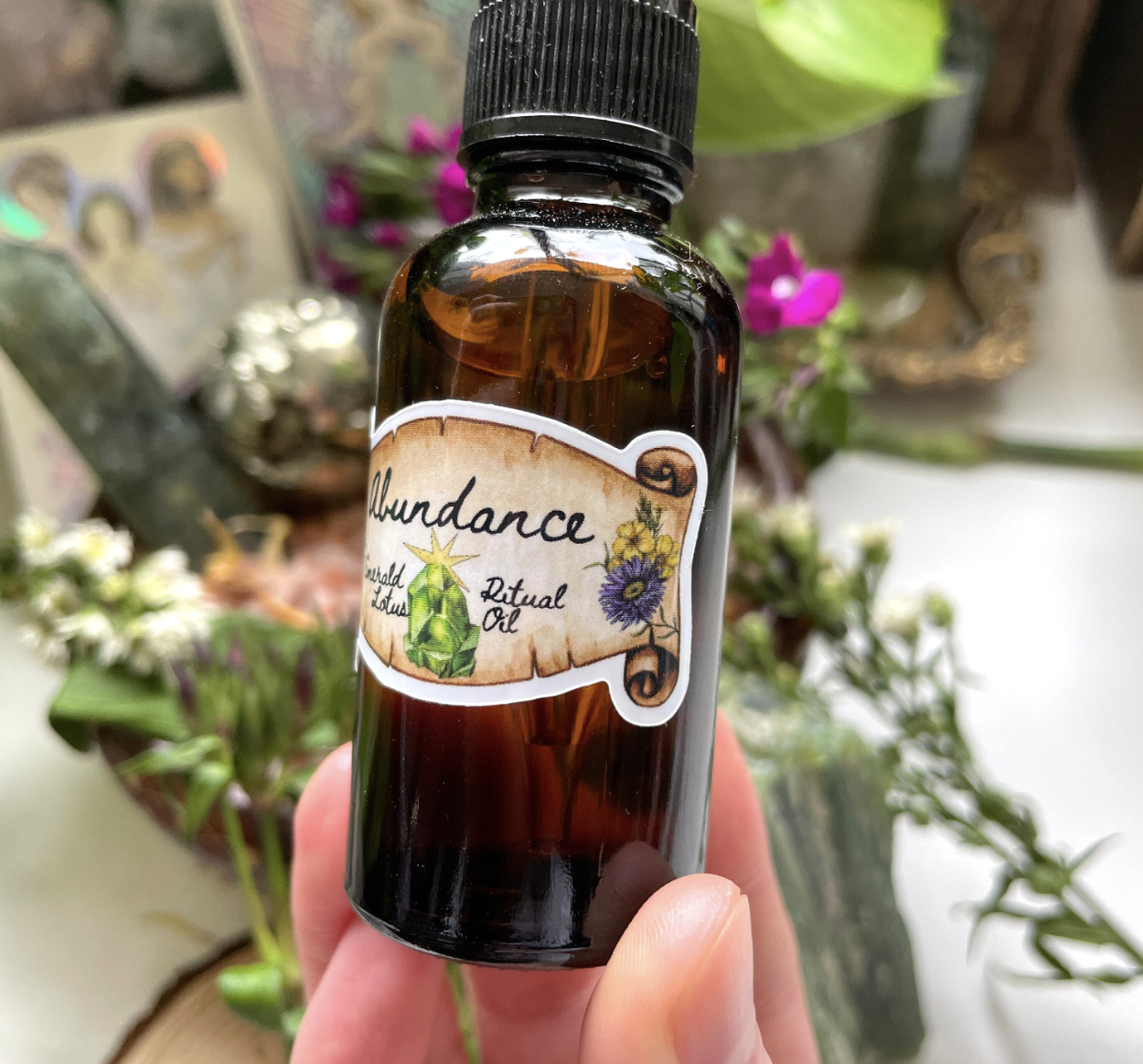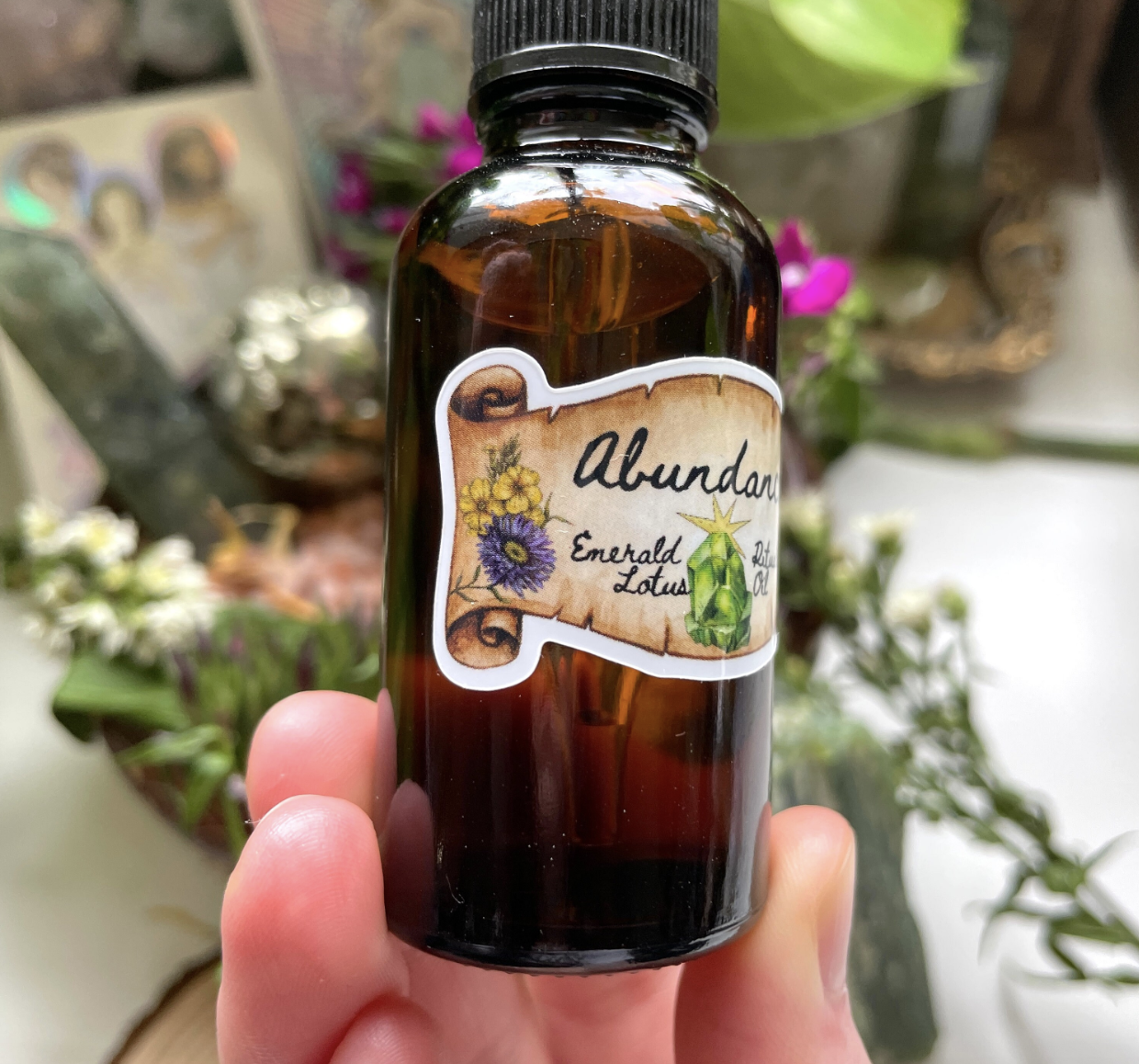 Abundance oil was crafted to help you attract what you desire in life. Specifically, this oil was created with herbs and oils to help you attract good fortune, career success, financial wealth, and over all abundance! Perfect for money rituals and setting intention in your home, office, purse, wallet, etc.