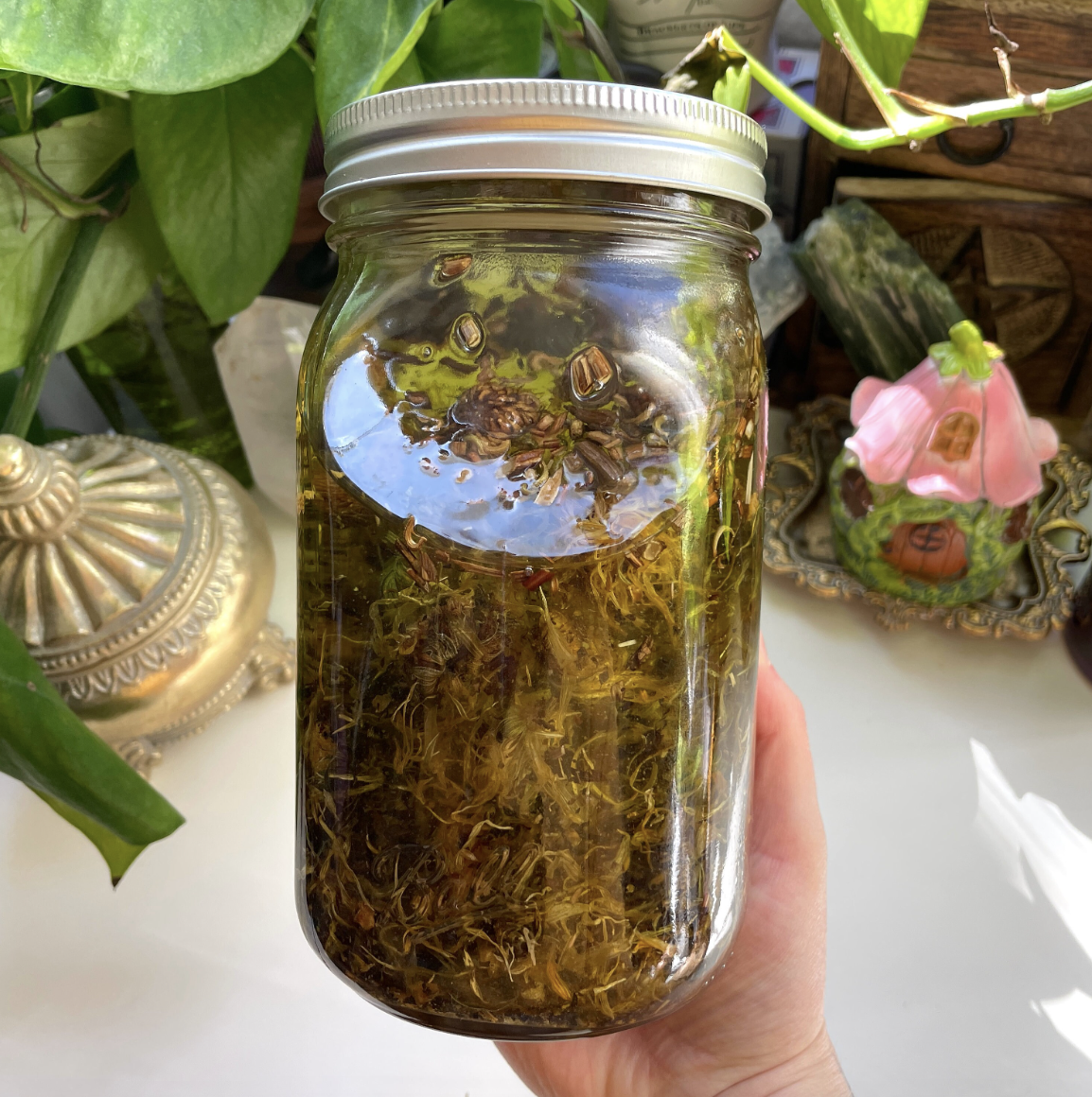 PLEASE NOTE - I have removed ALL herbs from the jar after brewing this oil. Unlike some other ritual oils, this one does NOT have loose herbs in the bottle. I wanted the oil to remain fresh longer without going bad, and one of the best ways to do that is to create an herbal infusion and to remove the dried herbs once the mixture has brewed.