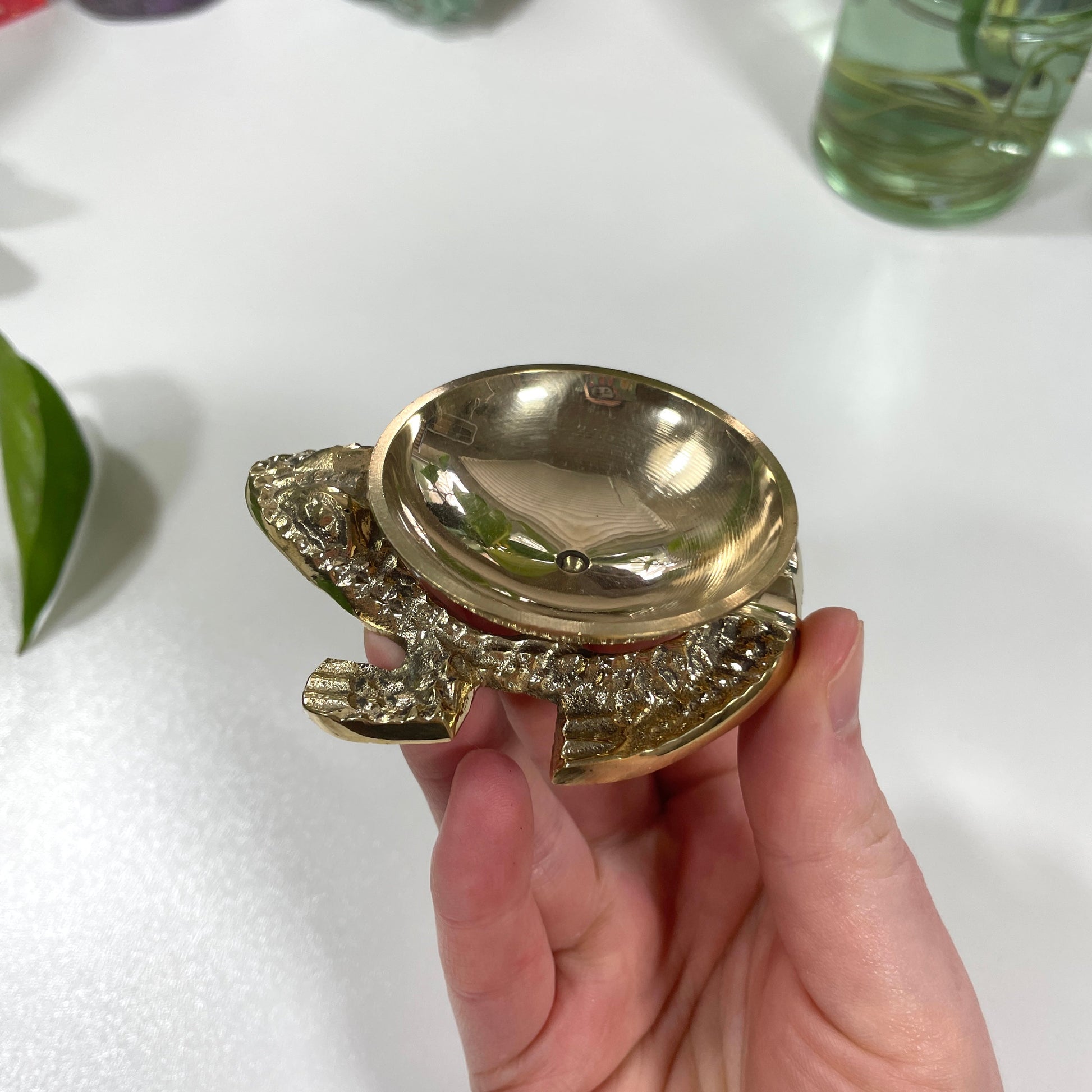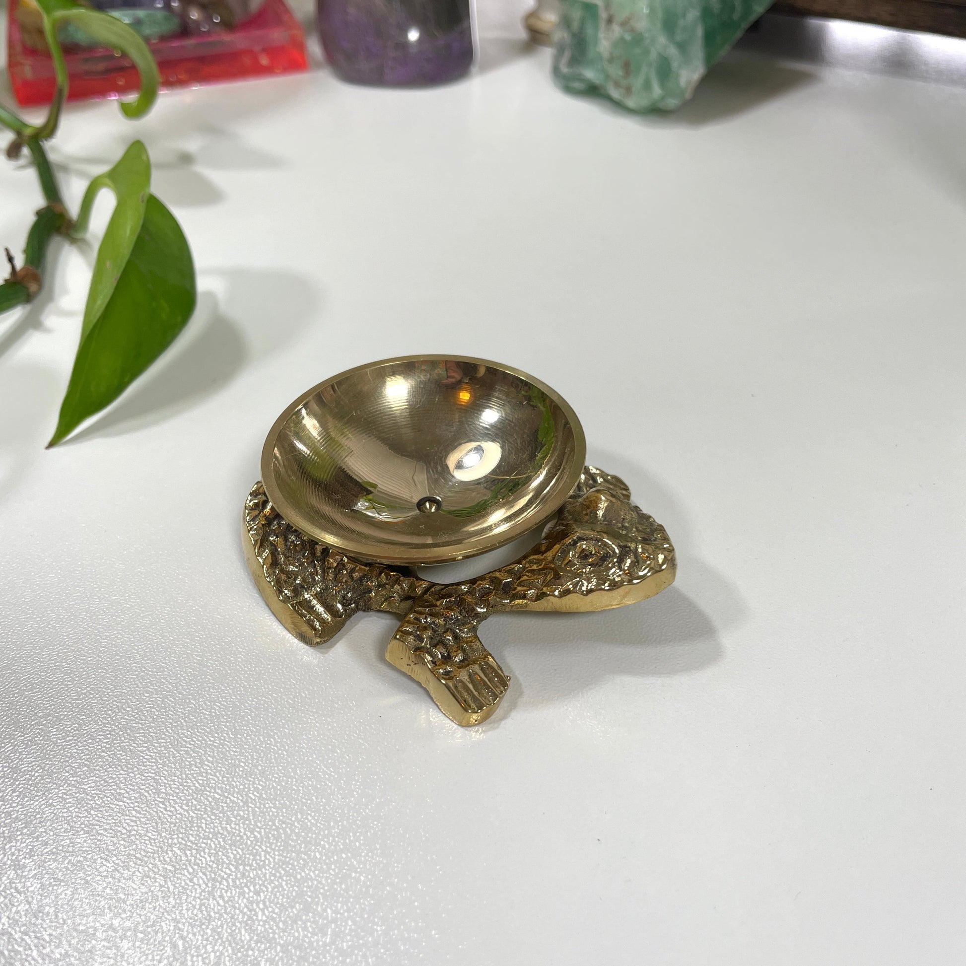 This small but powerful brass burner features a frog. A sacred symbol of luck, cleansing, and spiritual metamorphosis. It’s perfect for cone incense, small offerings, or as a focal point on your altar.