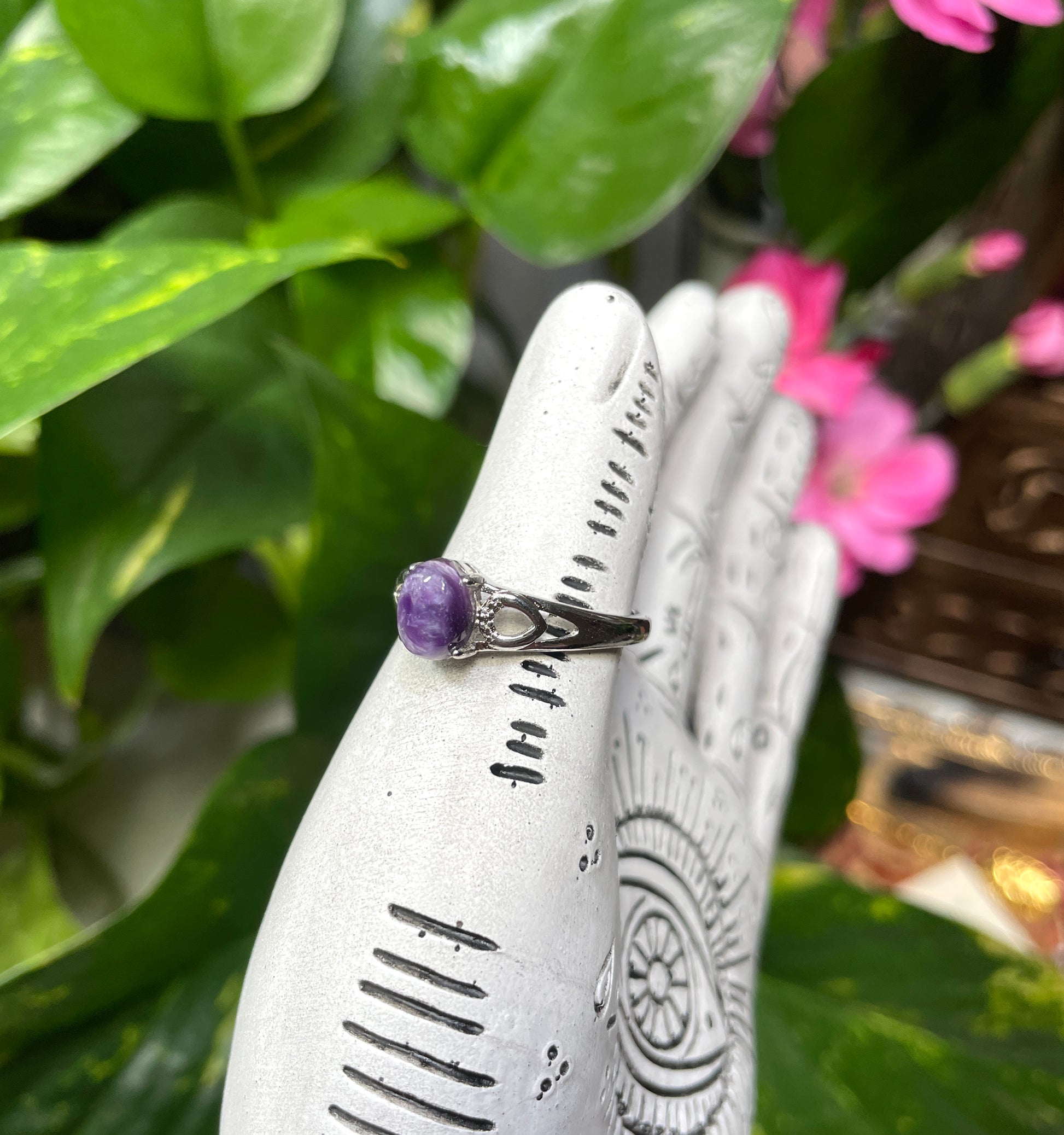Each ring has a unique setting: butterfly, leaf, heart, and oval (see photos).