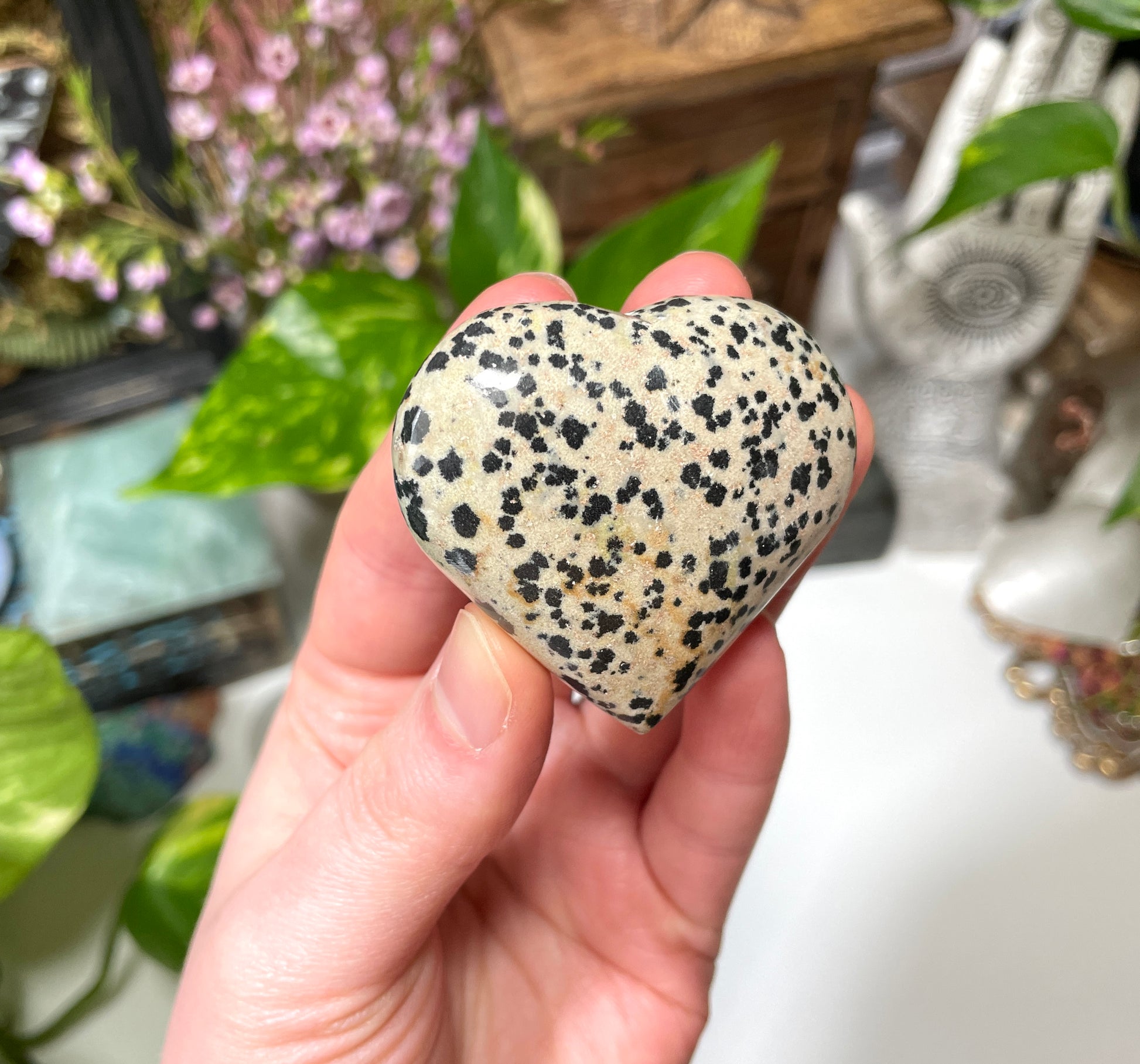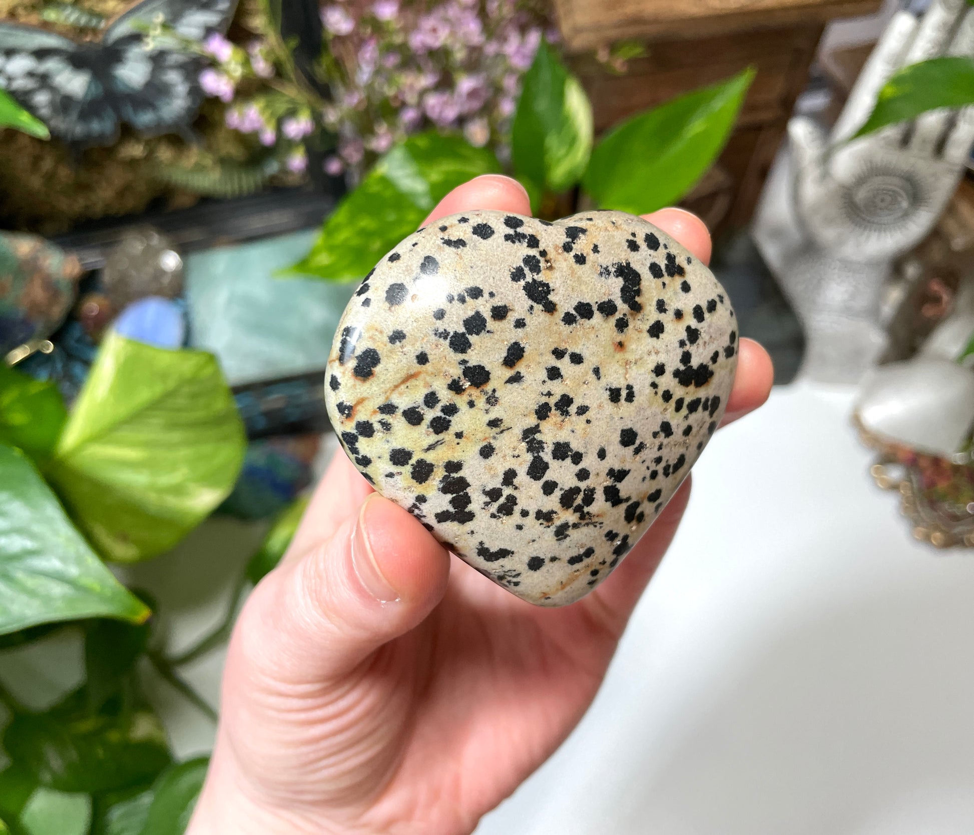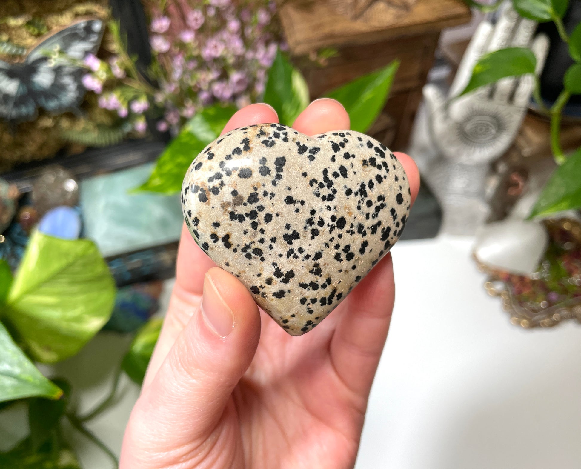 Dalmatian Jasper is named because of the black spots (caused by black tourmaline deposits) on the stone resembling the Dalmatian breed of dog. This beautiful palm stones are great for reducing stress and worry, and help you to connect with your inner child to play and enjoy life. The Tourmaline inclusions make this fun and playful stone have an even deeper energy of healing, spiritual grounding and psychic protection - which makes these palm stones truly have everything one would need for an amazing all-around stone!