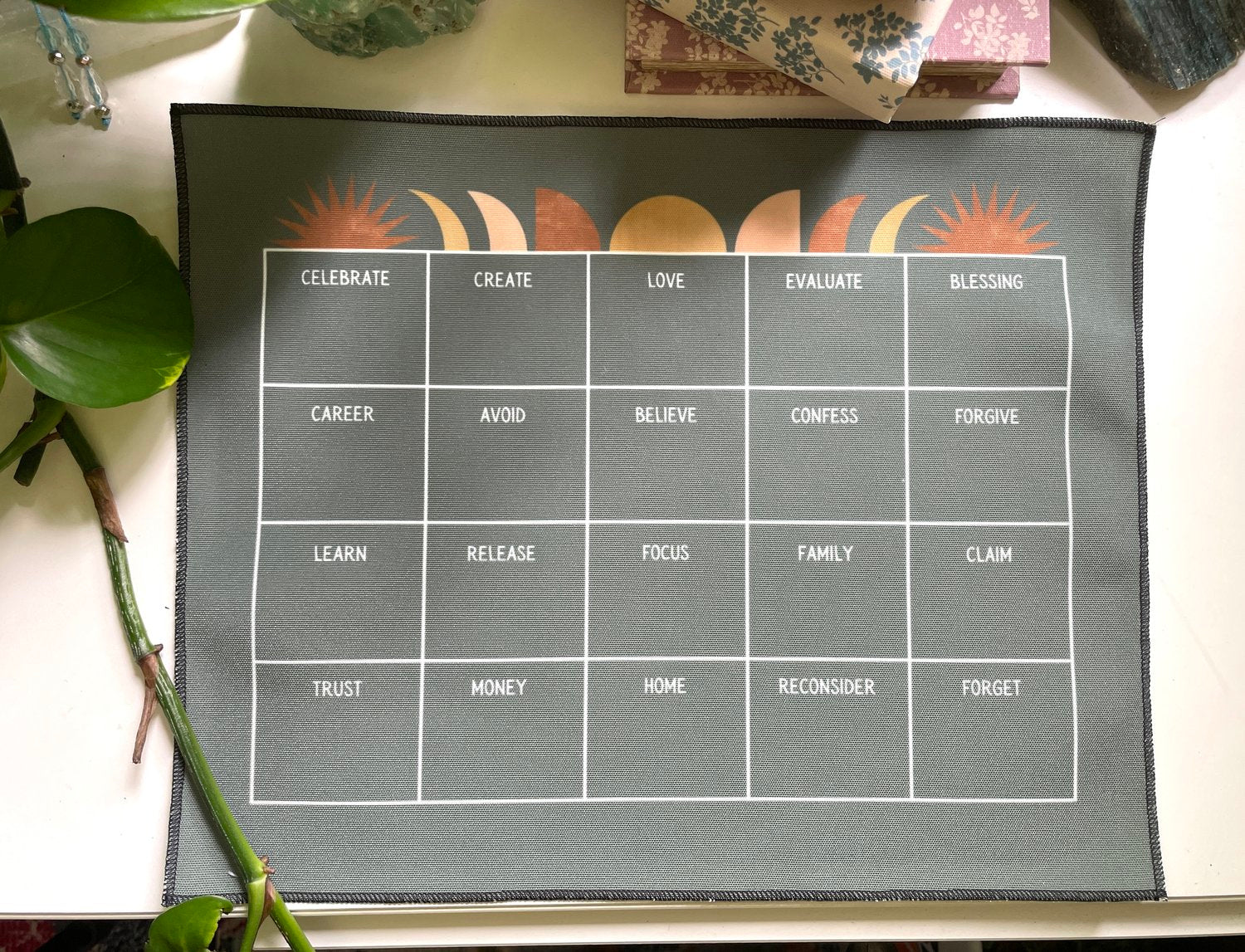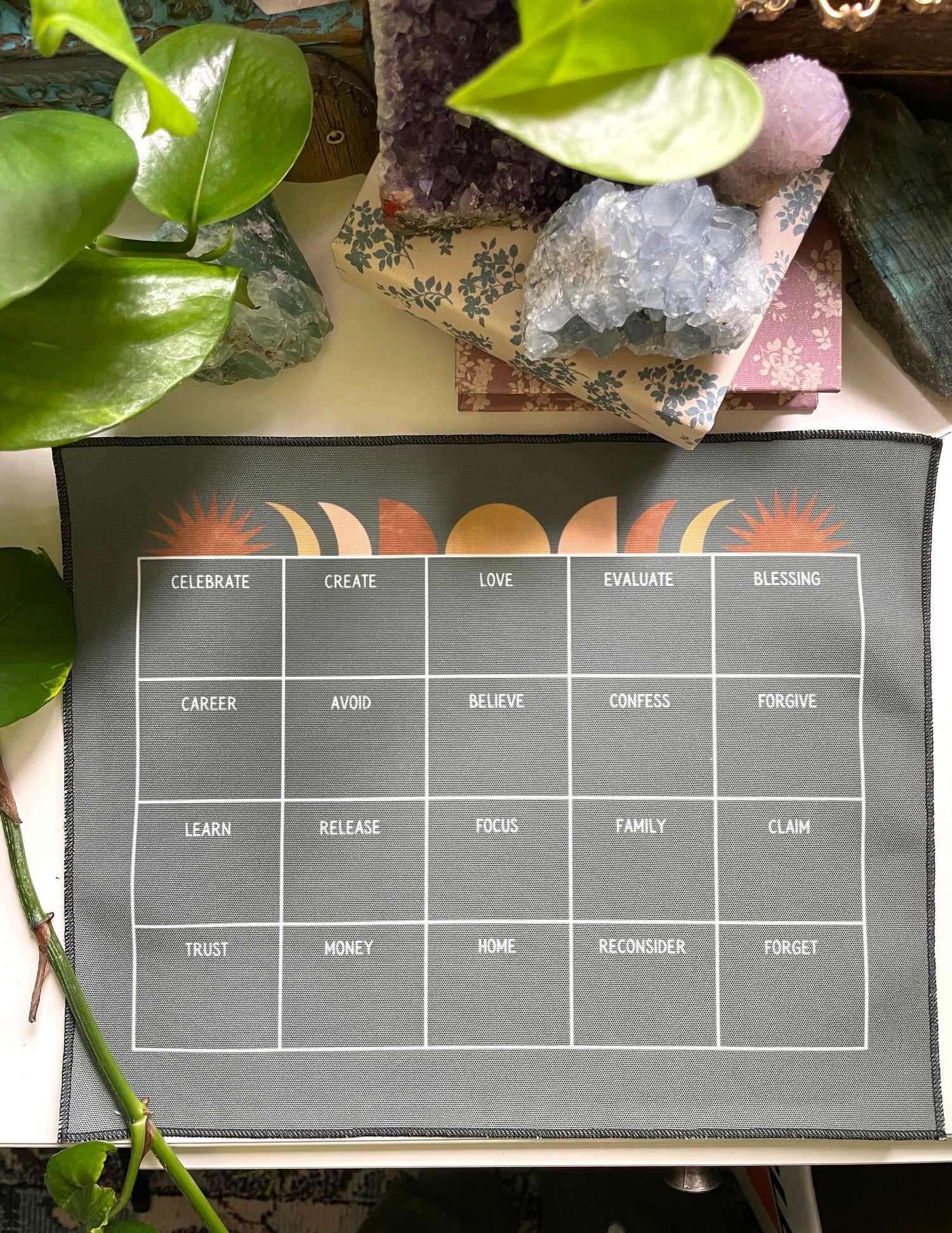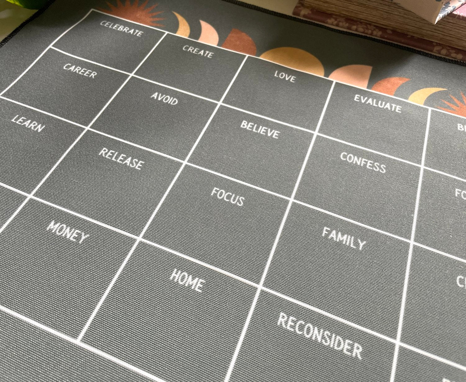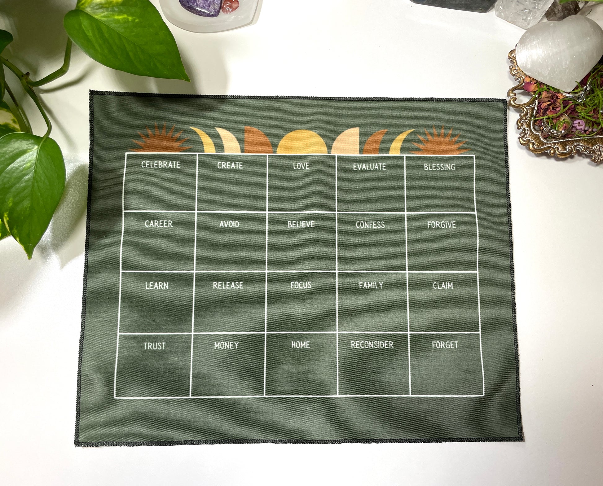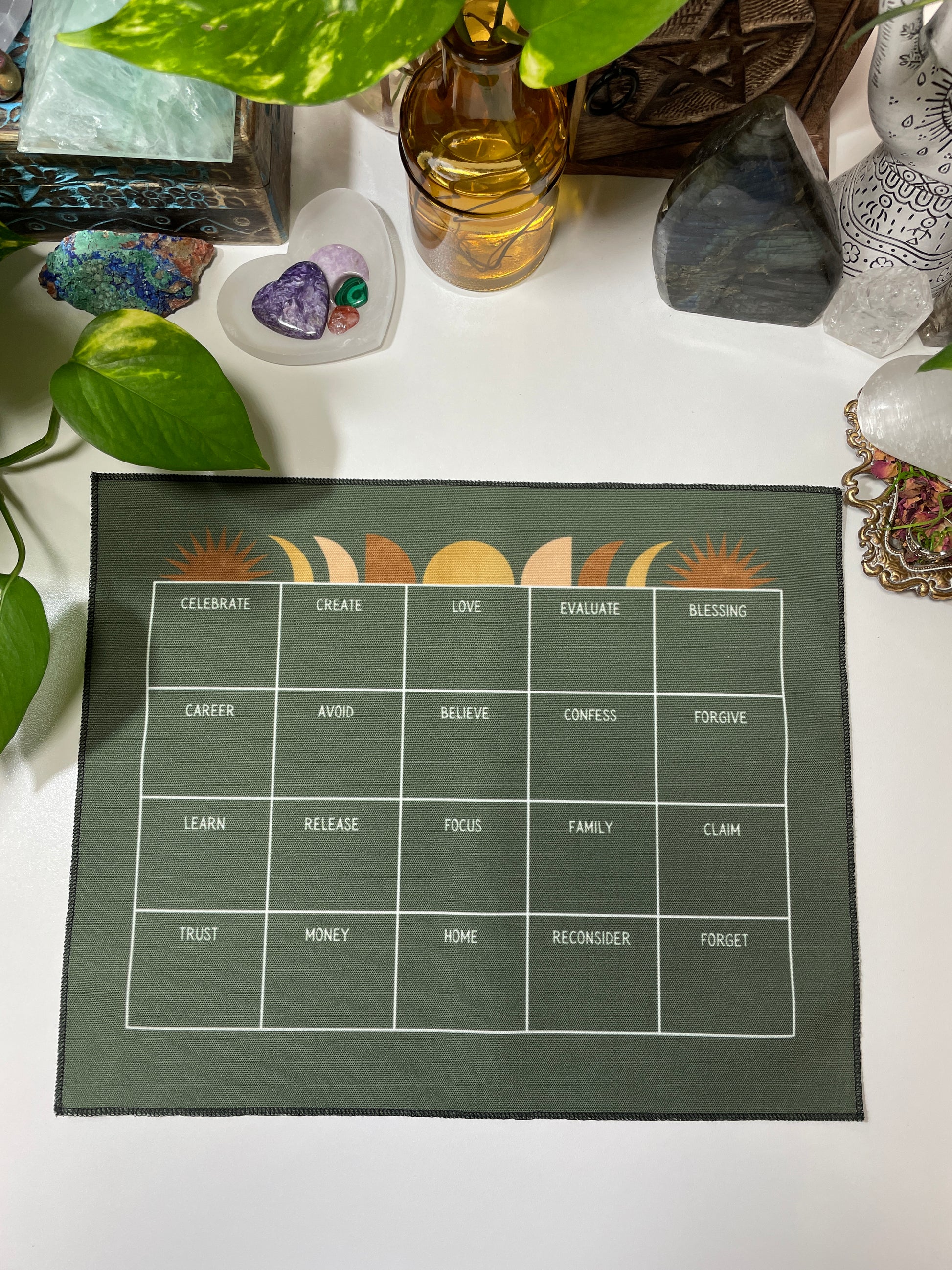 This casting cloth is intended to be used for anyone wanting to explore their intuition and psychic abilities (beginners and advanced!). Dive deep into your current emotions, truths, lessons and relationships with family, career, money and love.
