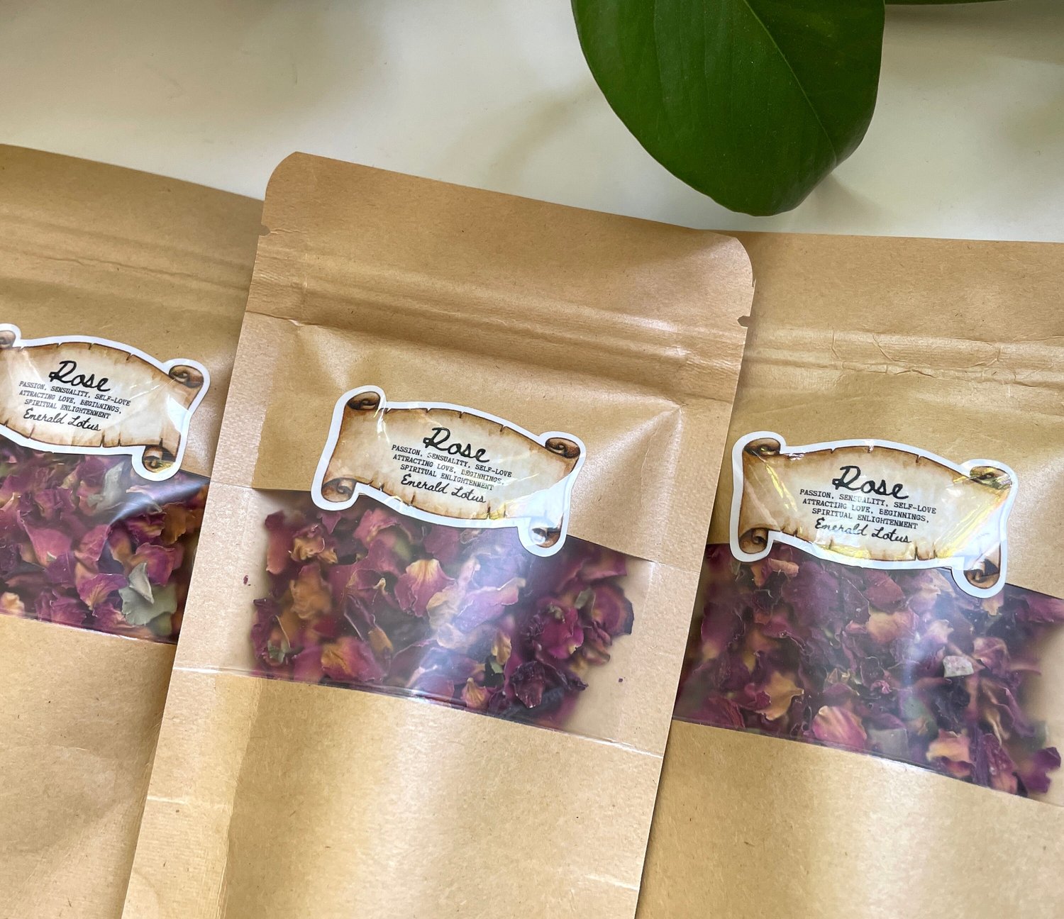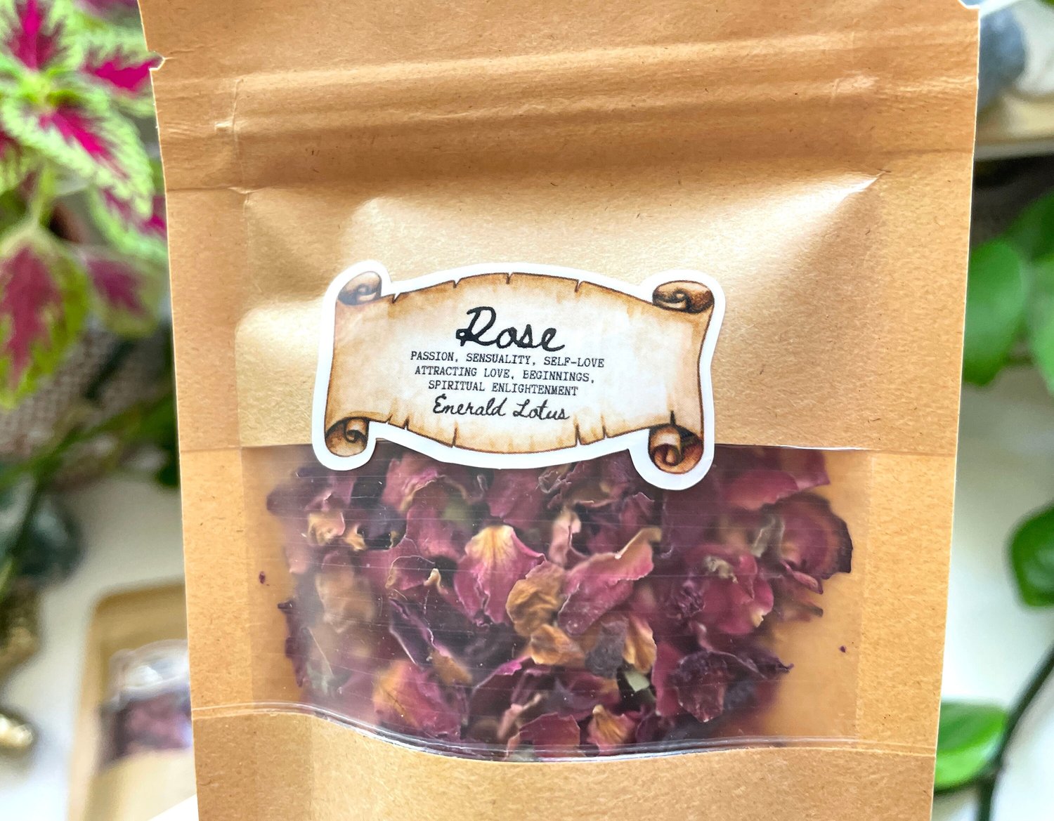 These dried rose petals are perfect for any beginner or practicing witch. Roses are wonderful for use in spellwork and herbalism. Roses are innately connected to the Moon and Divine Feminine energy. Rose is known for enhancing intuition, uplifting spirits, improving romance, connecting with our own sensuality, and self-love.