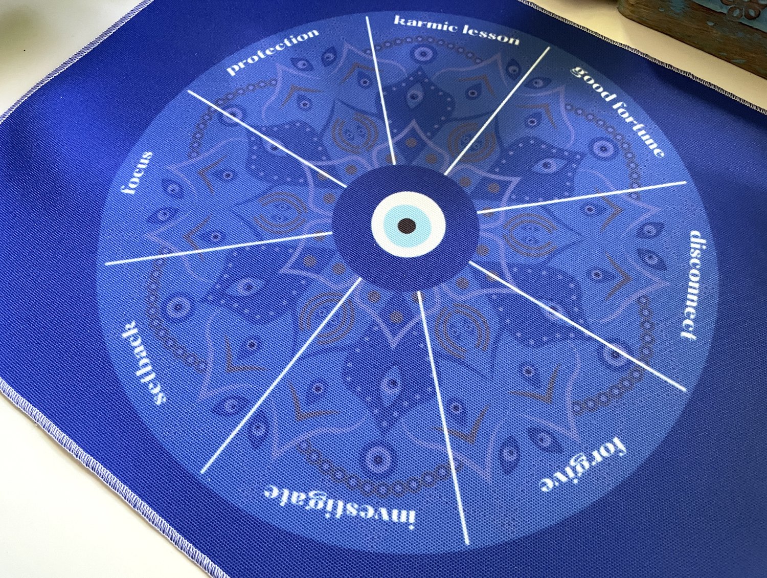 This casting cloth is all about working with the Evil Eye energy of spiritual protection and self-awareness.