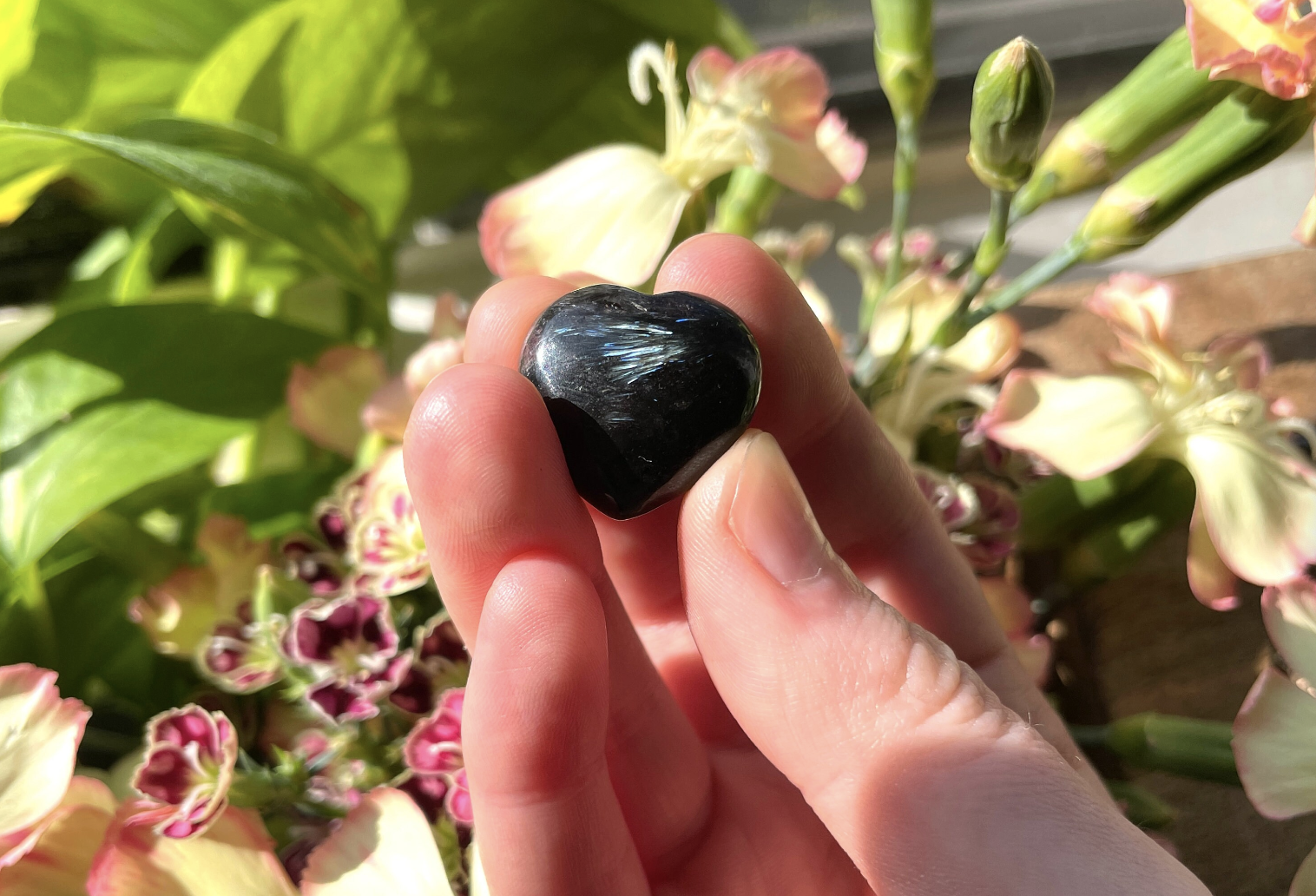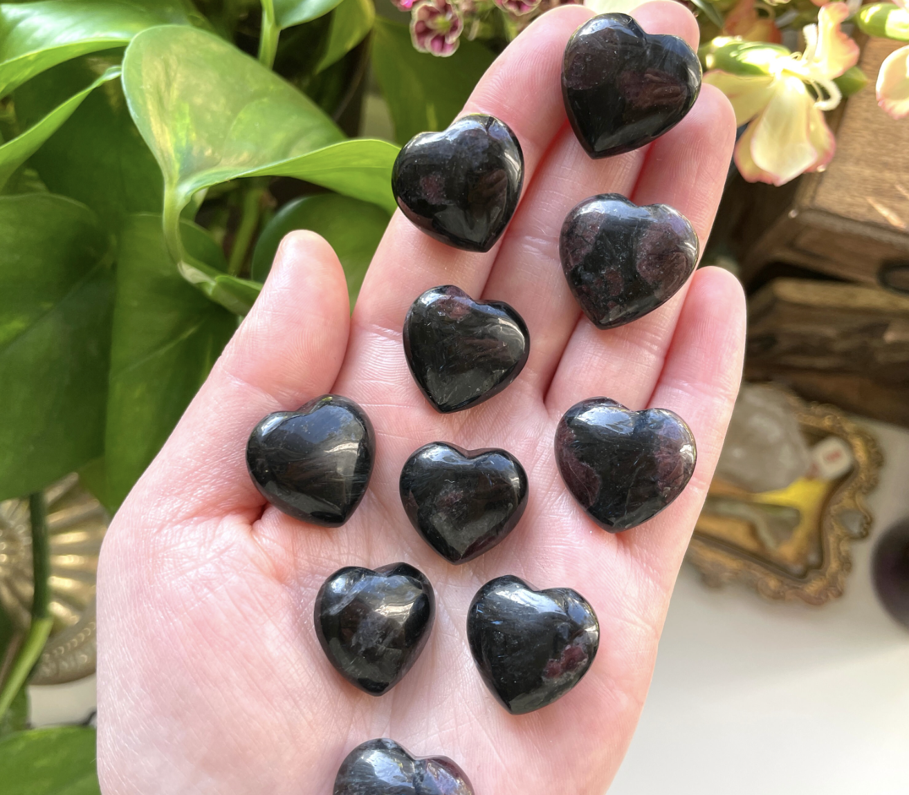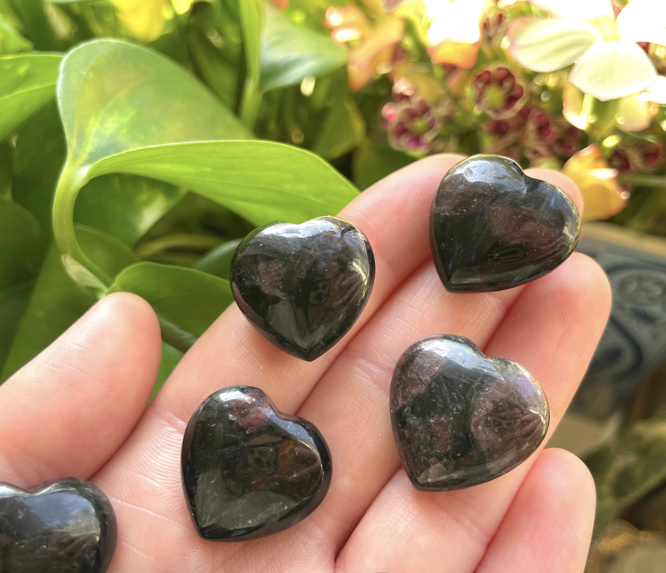This listing is for (1) PC Astrophyllite with Garnet Heart Carving