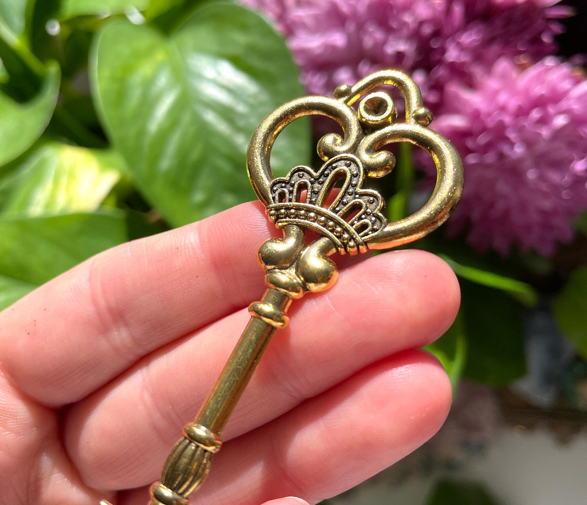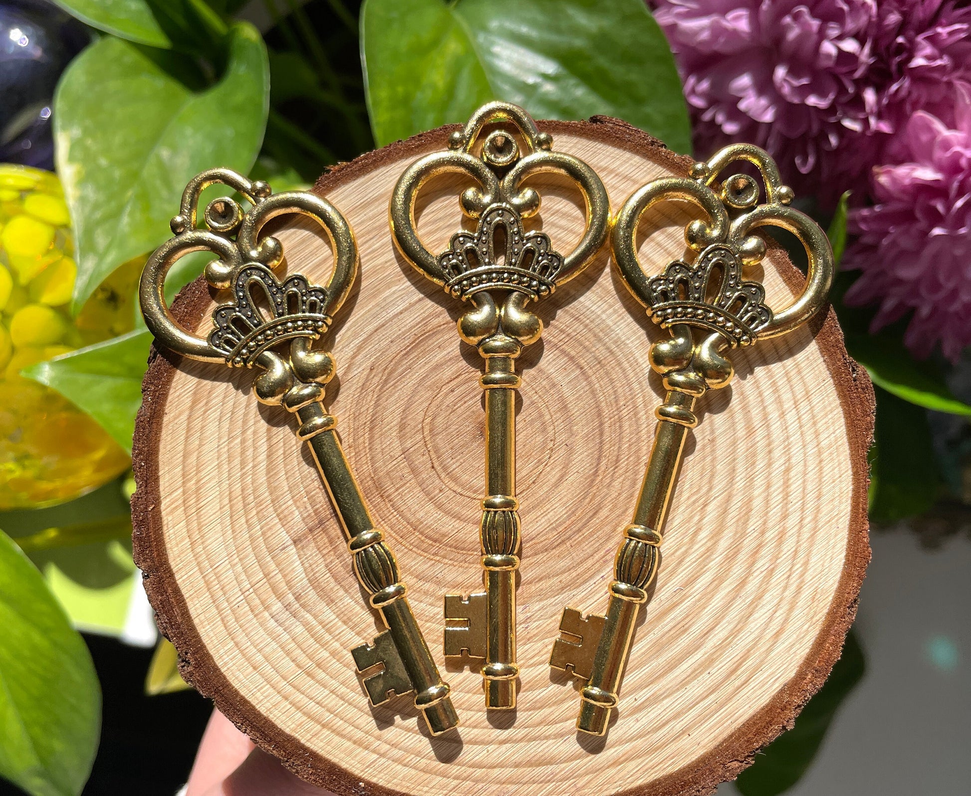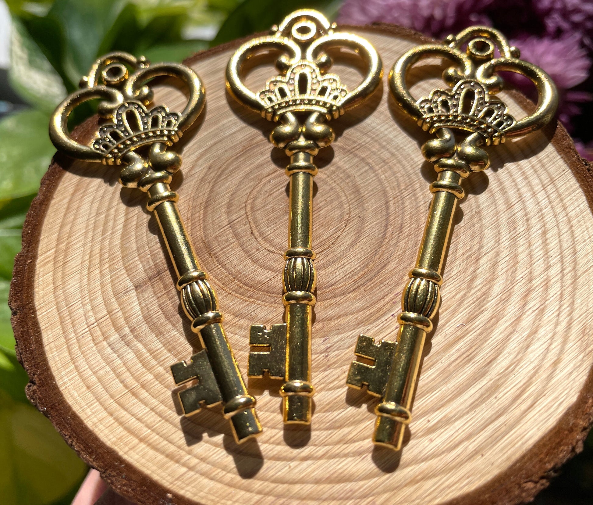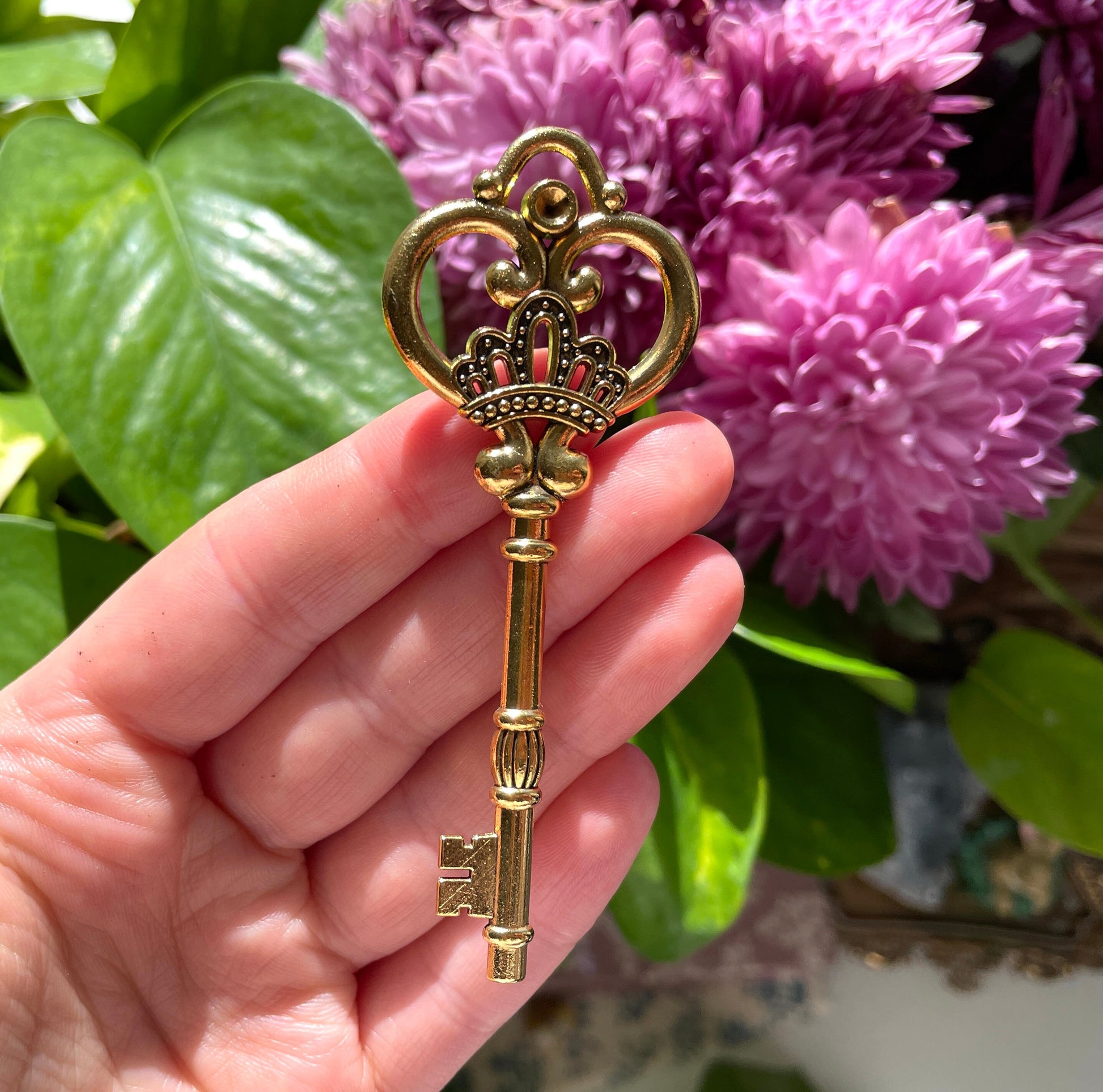 These gold vintage inspired ornate key pendants are quite weighted and make beautiful altar decor or witchy ritual items. I would perhaps advise against them for jewelry as they are 10g each (although perhaps on a long necklace they would be ok!)