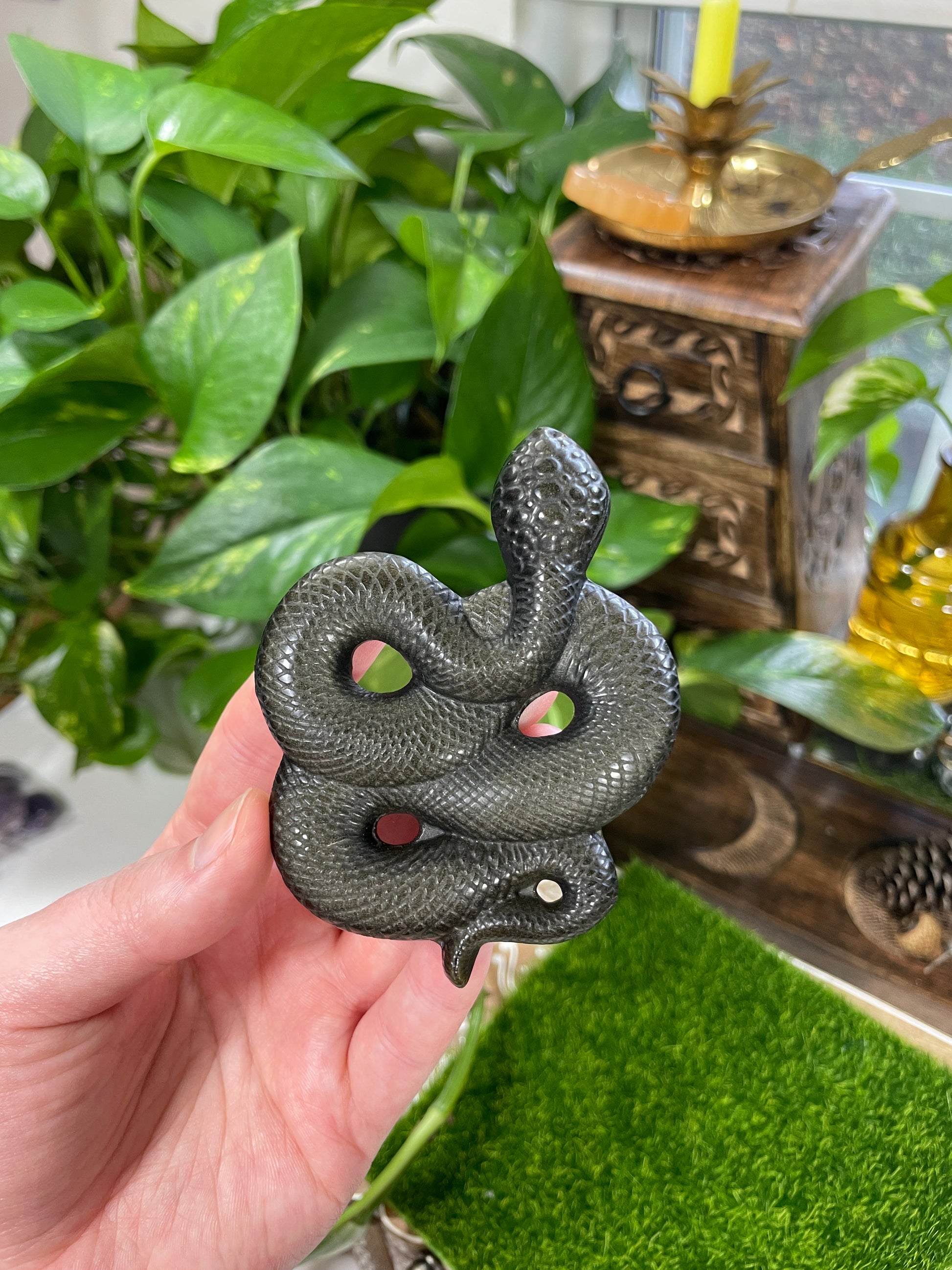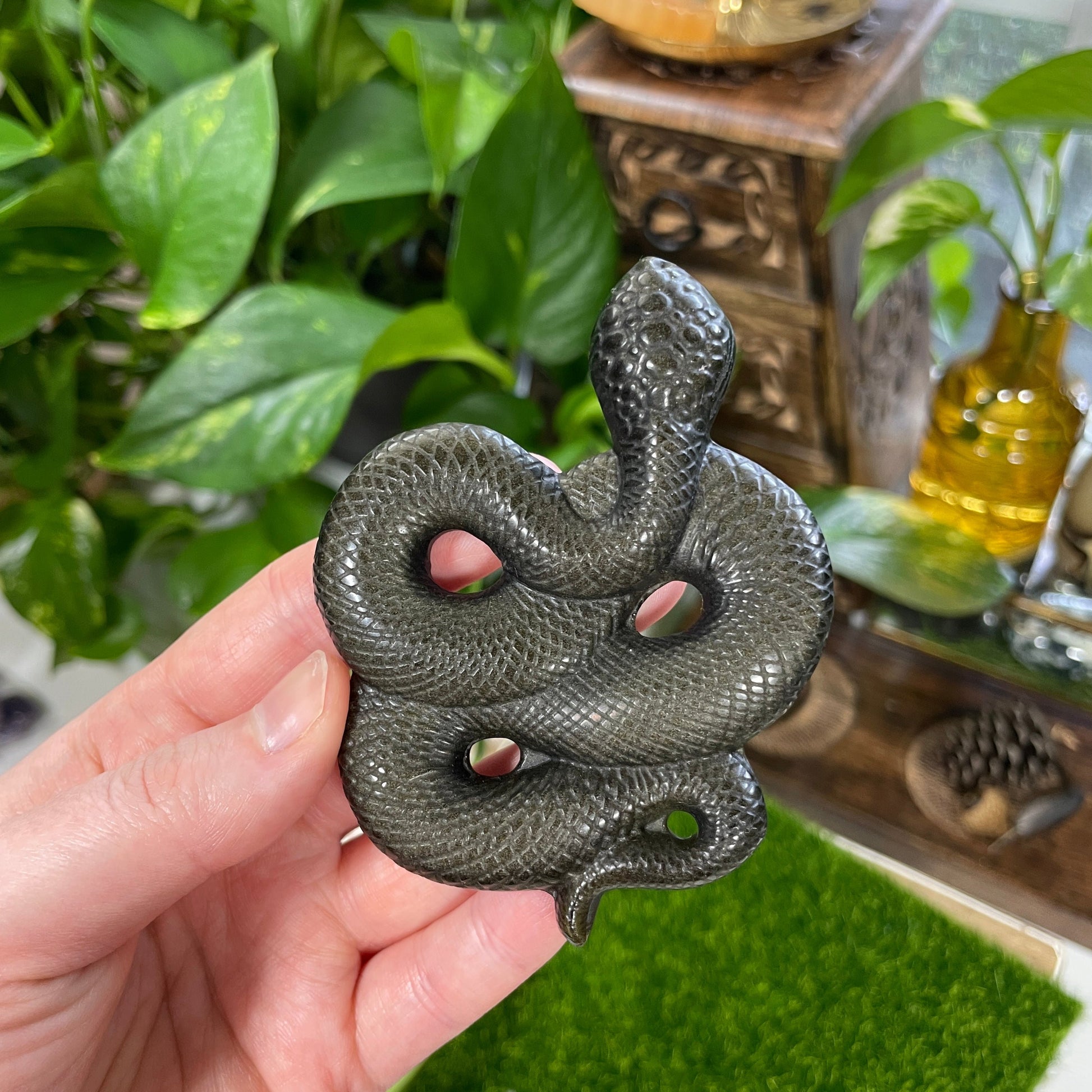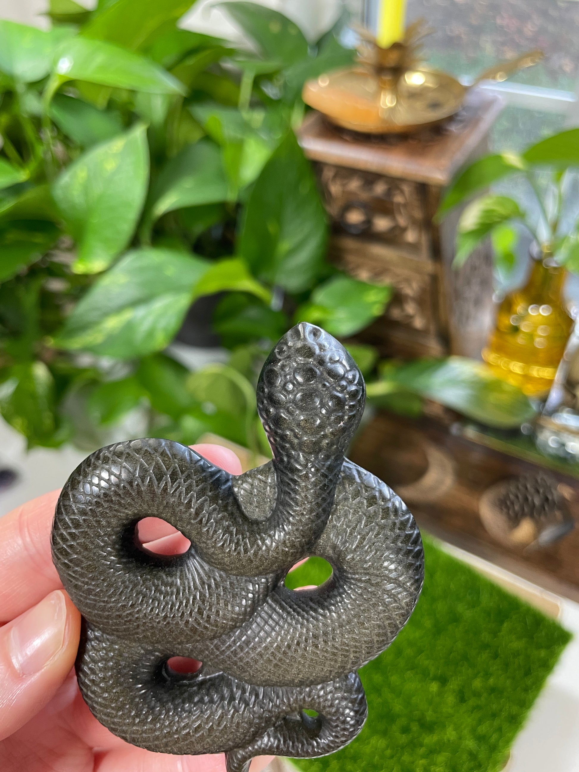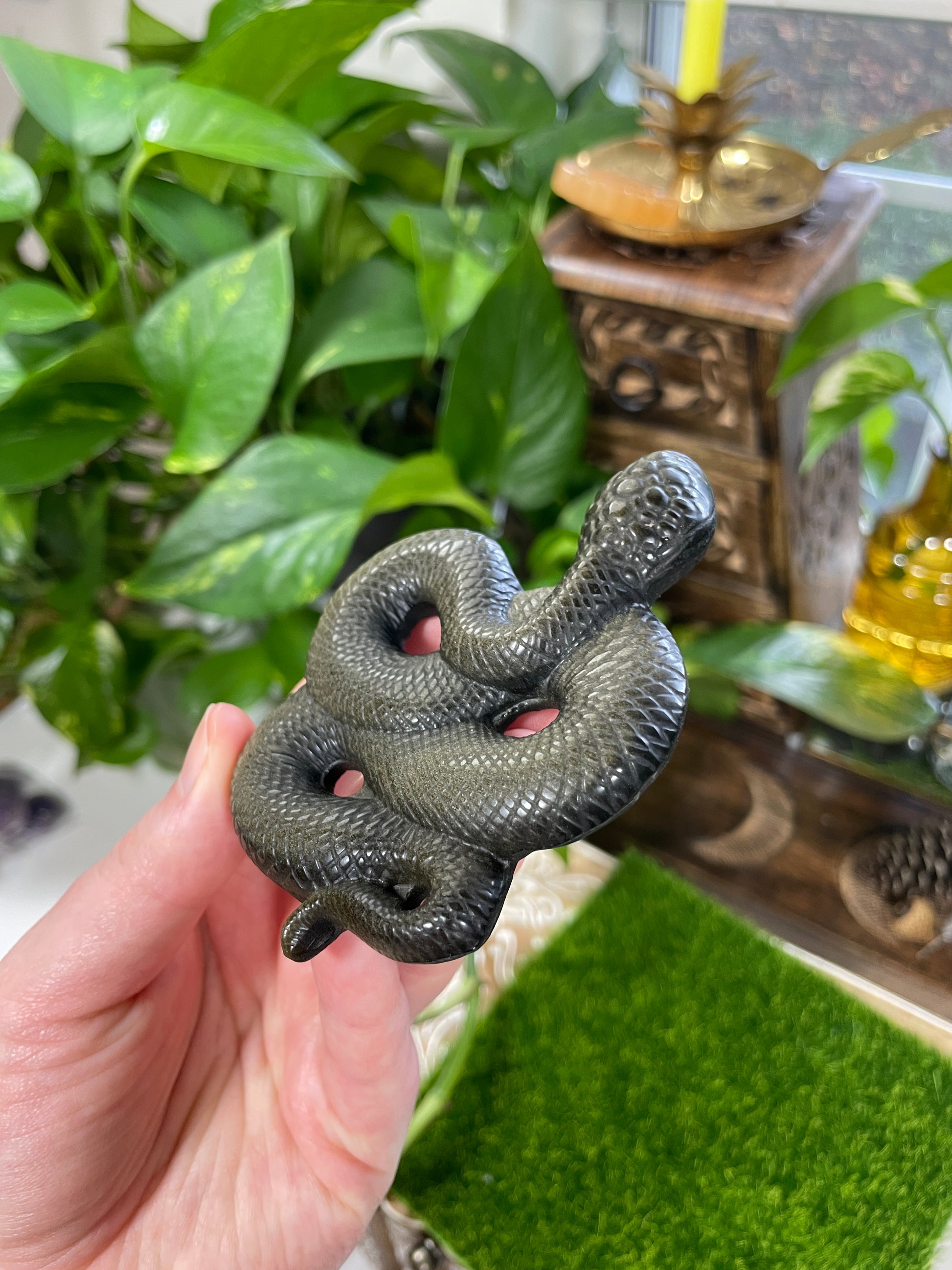 This listing is for (1) PC Gold Sheen Obsidian Snake Carving
