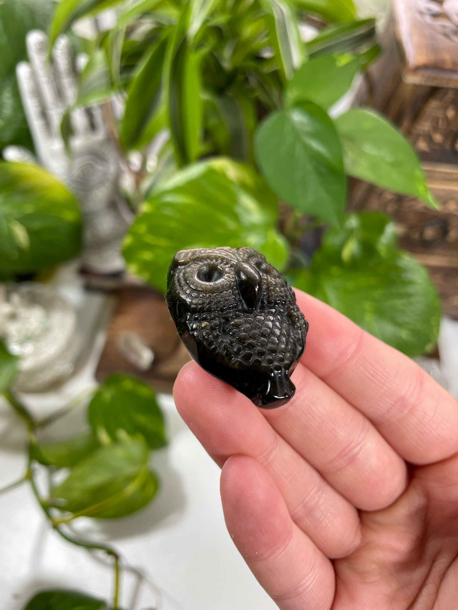 This listing is for (1) PC Gold Sheen Obsidian Owl Carving