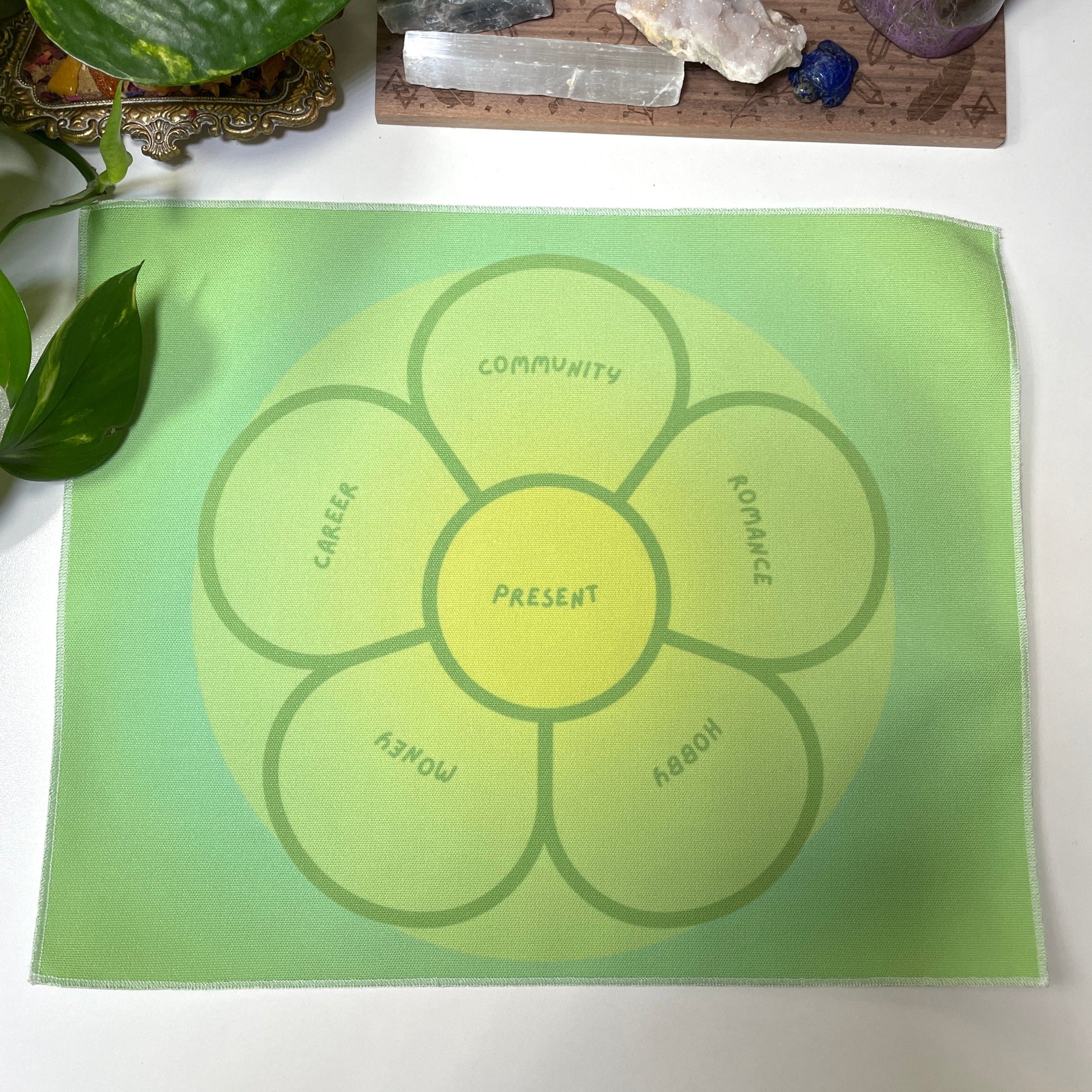 This casting cloth is incredibly beginner friendly to help you dive into the world of casting without feeling too overwhelmed with options, while giving you a very simple layout to use to help guide your intuitive readings.