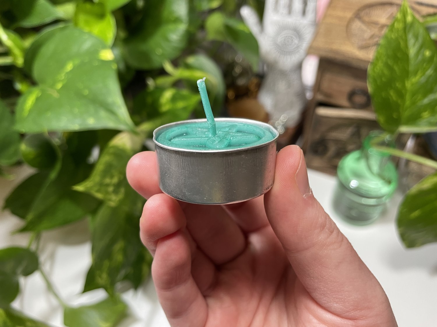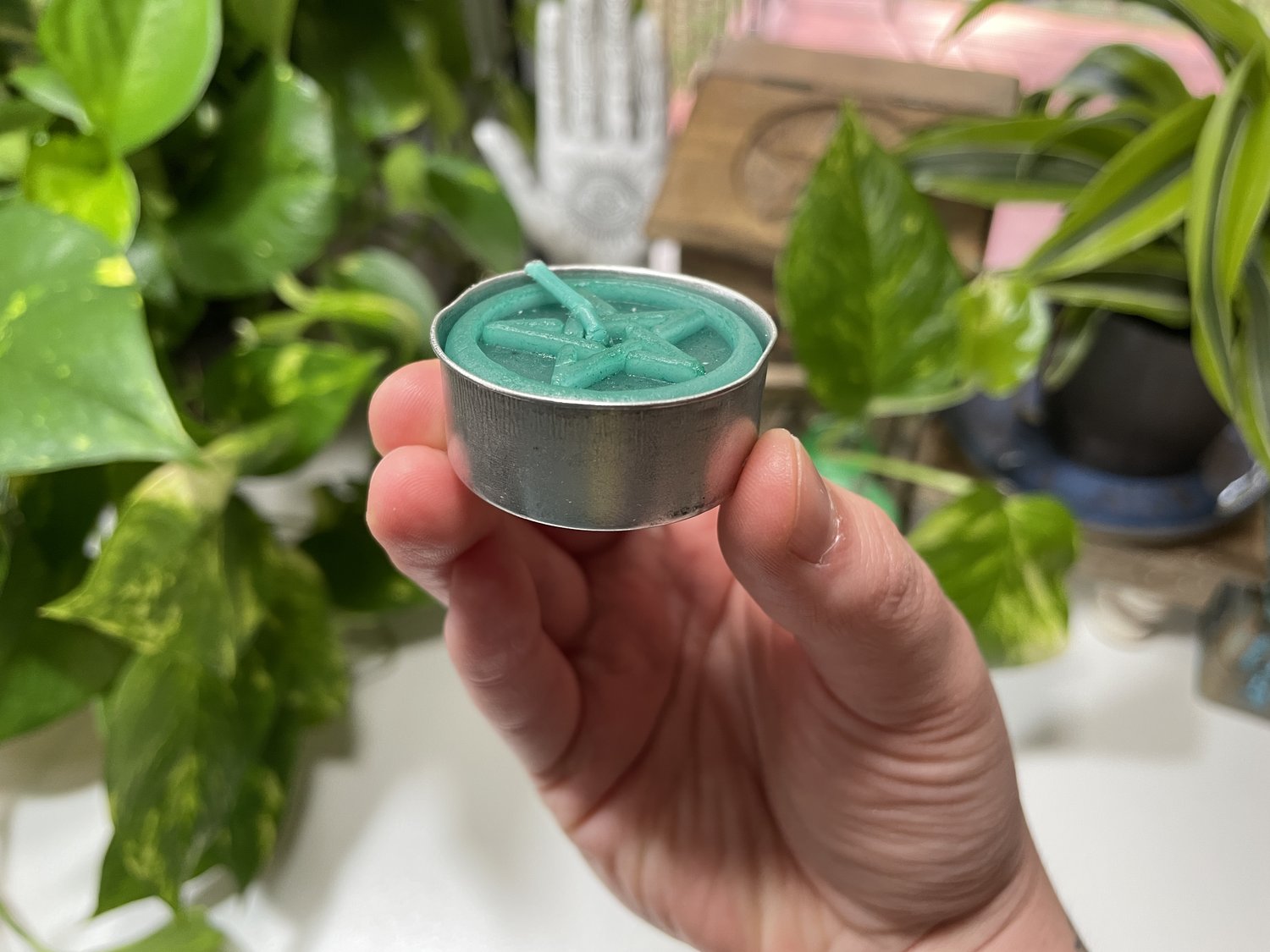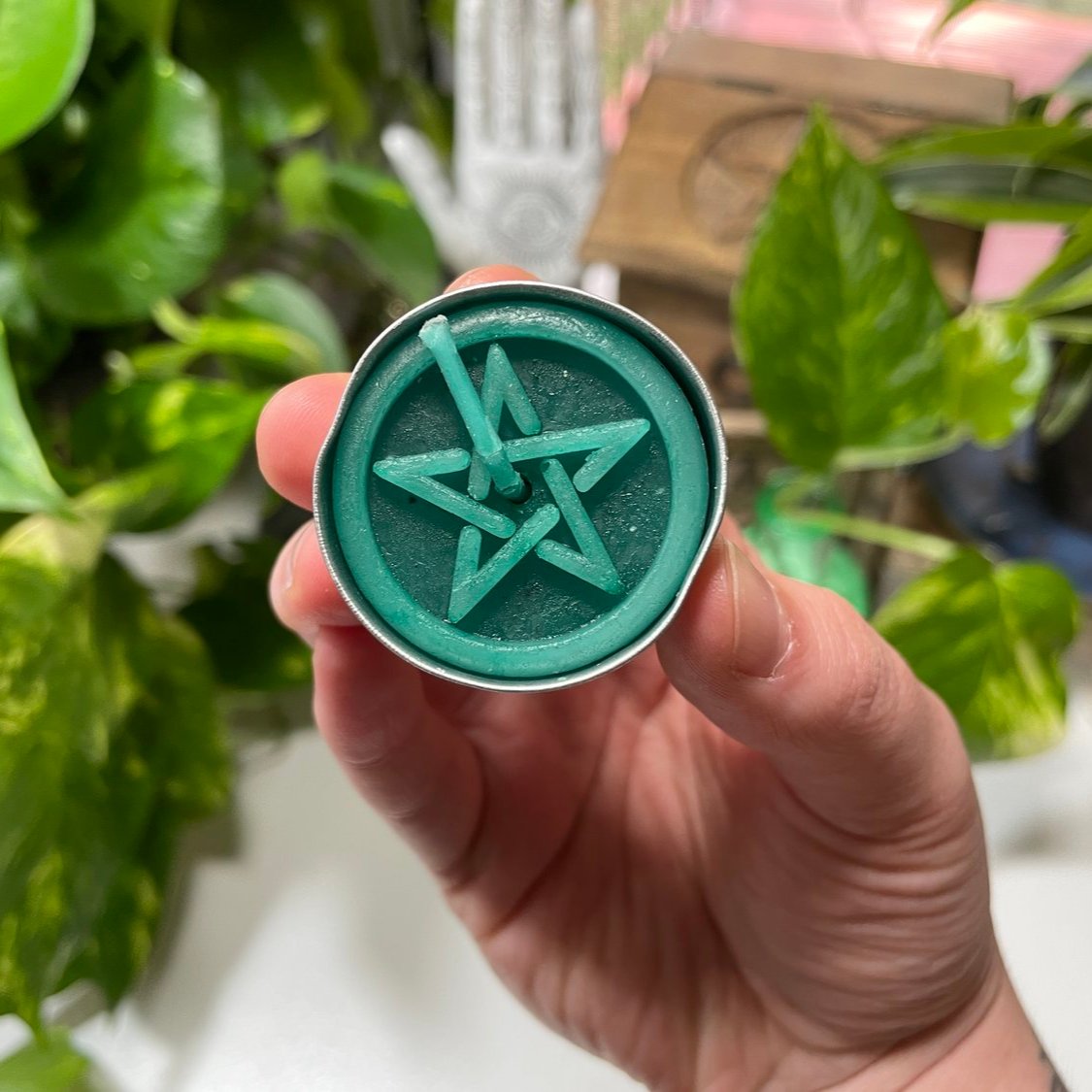 This listing is for (1) PC Green Pentacle Tea Light Candle