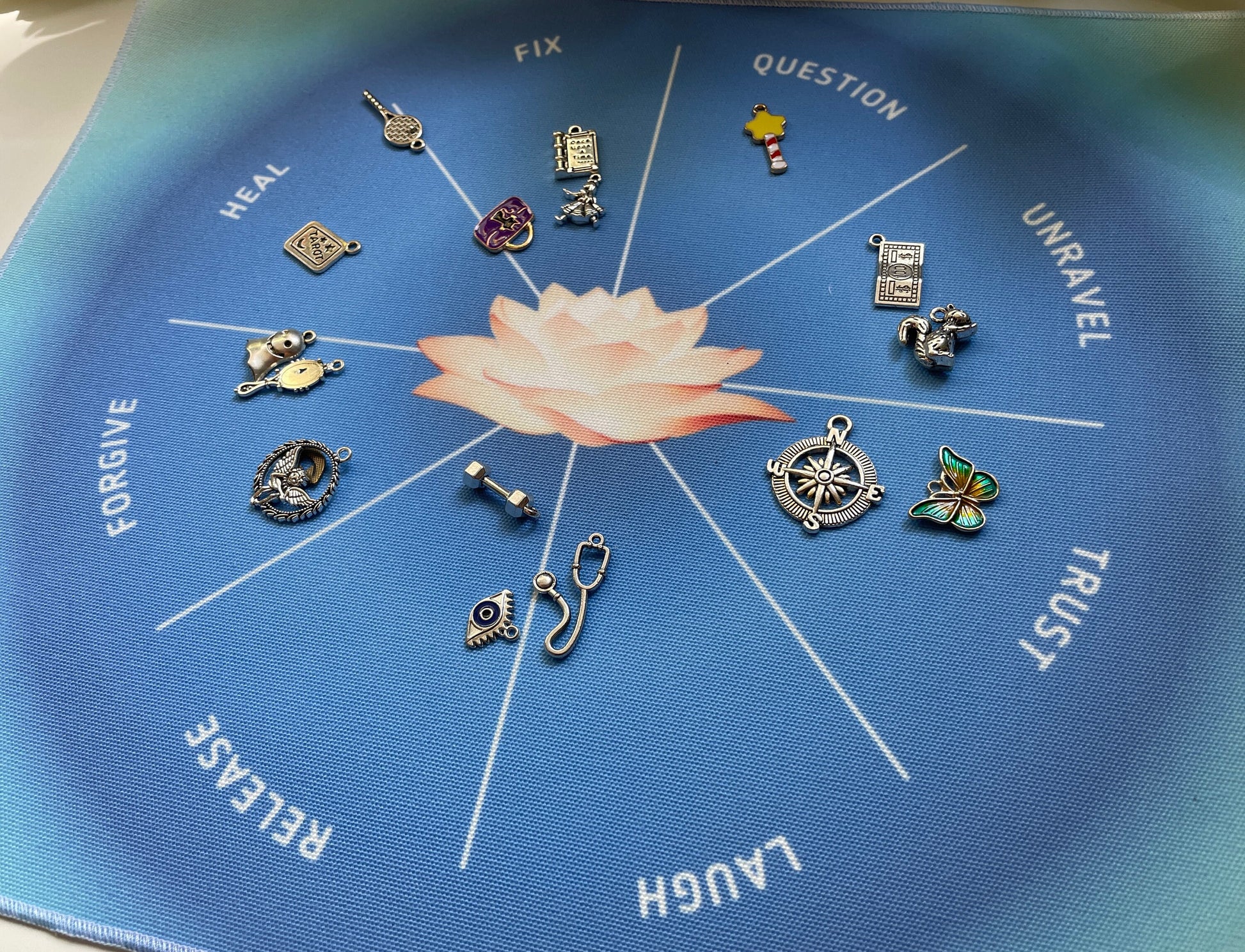 This cloth can be used with charms (sold separately), pendulums, runes, crystals or any other metaphysical/spiritual/divination tool.