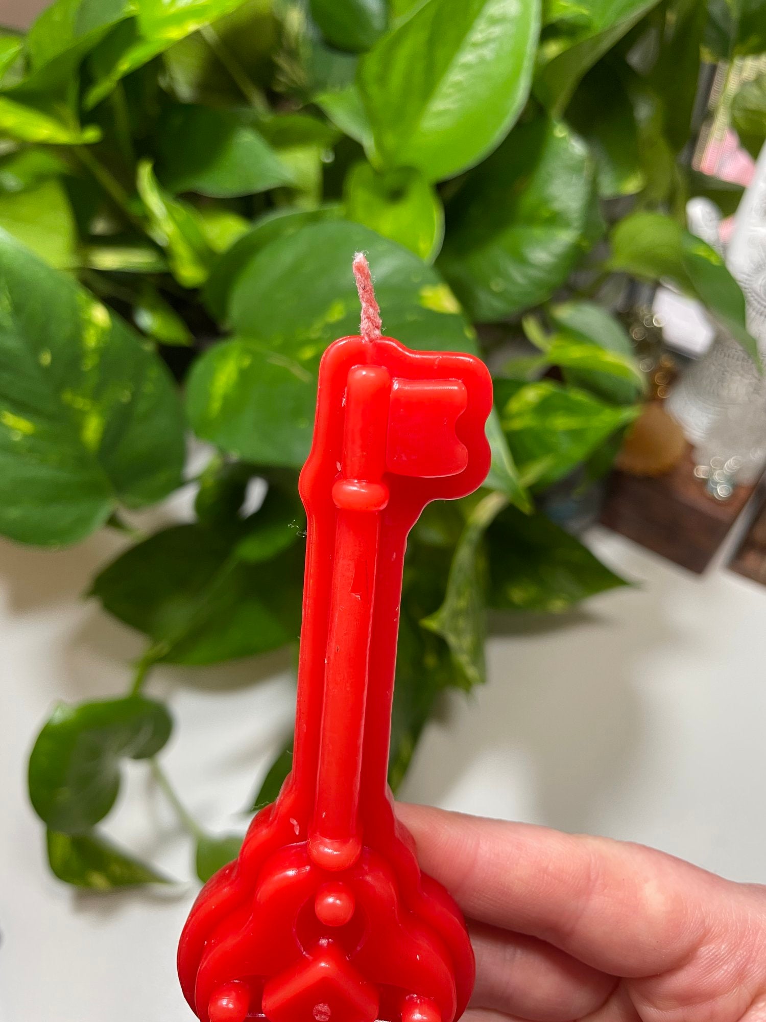 Unlock mystical energies with these Red Key-Shaped Candles. Crafted for rituals and spellwork, this vibrant red candle symbolizes power and passion. Light it to enhance your practice, delve into divination, or gift it for a touch of enchantment. Illuminate your path to inner power and magic!
