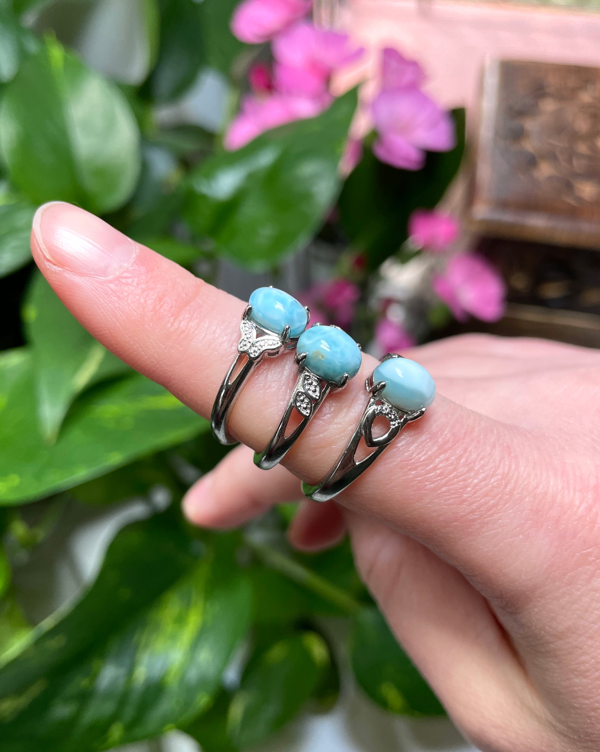 Each ring has a unique setting: butterfly, leaf, heart, and oval (see photos).