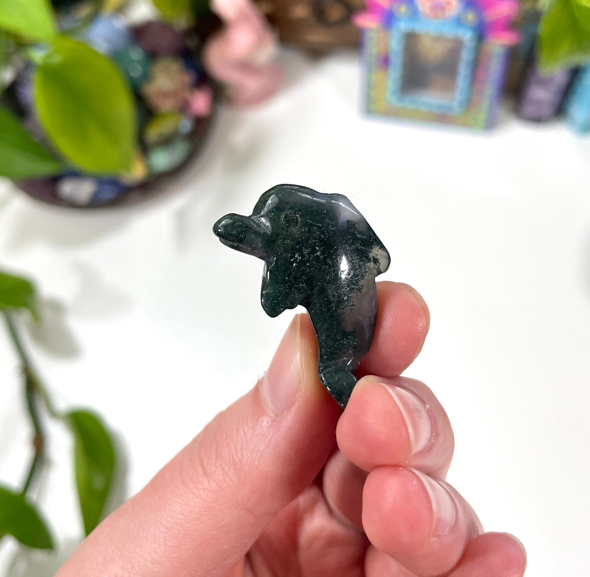 This listing is for (1) PC Moss Agate Dolphin Carving