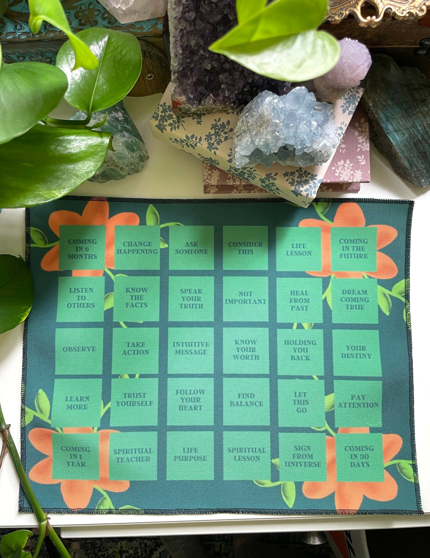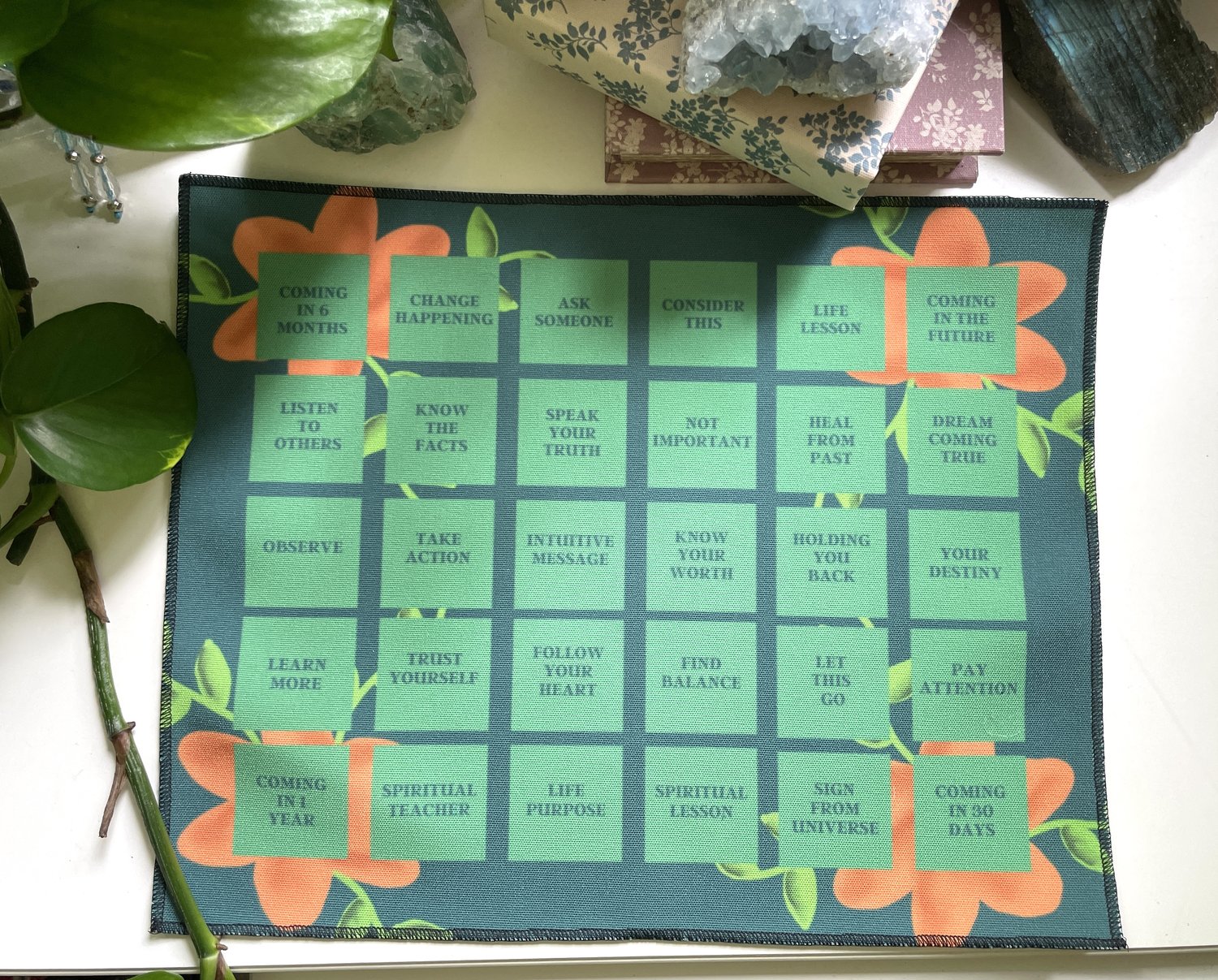 This cloth is intended to be used for anyone wanting to explore their intuitive and psychic abilities (beginners and advanced!), fortune telling, or just for fun and games.