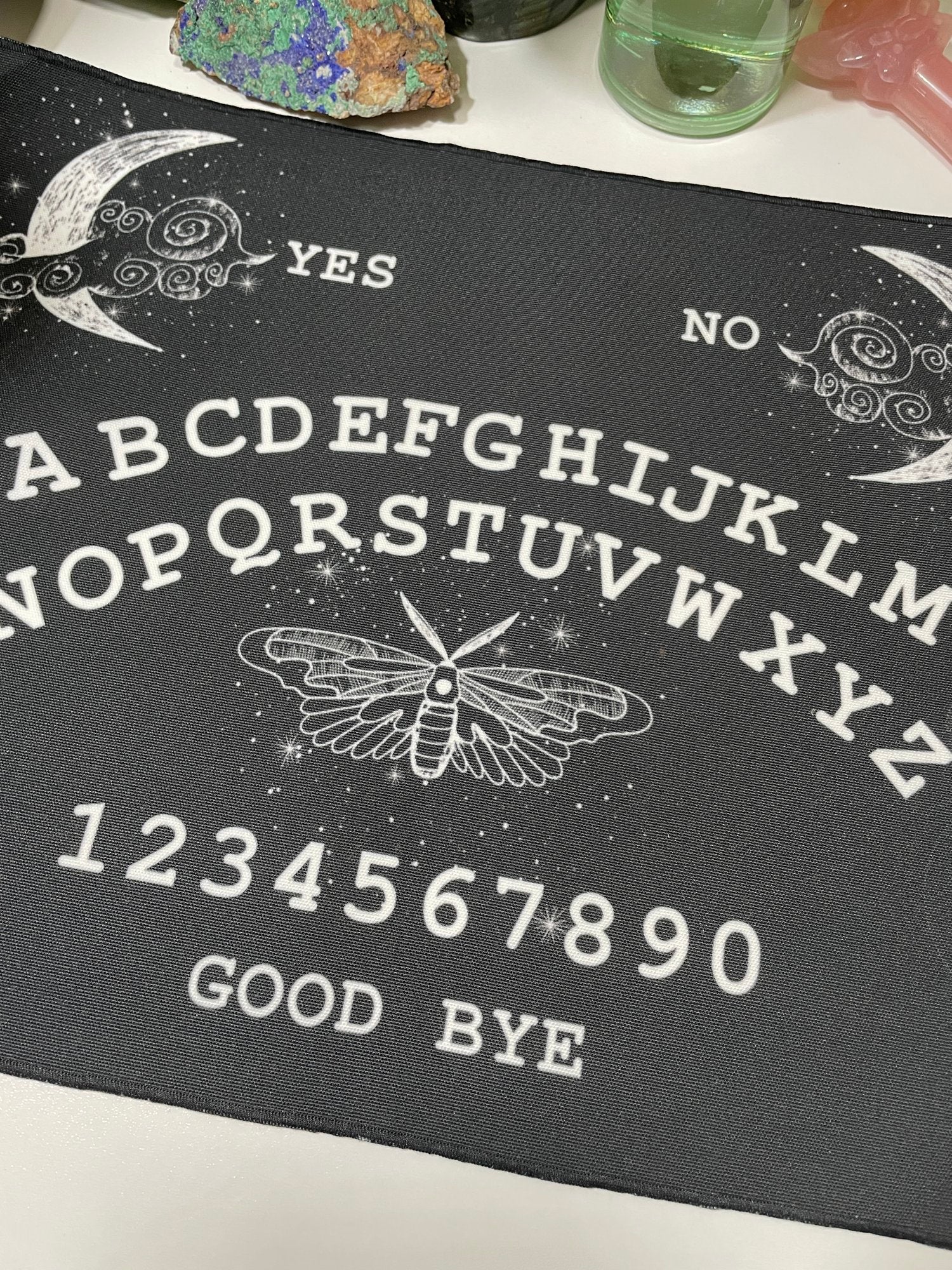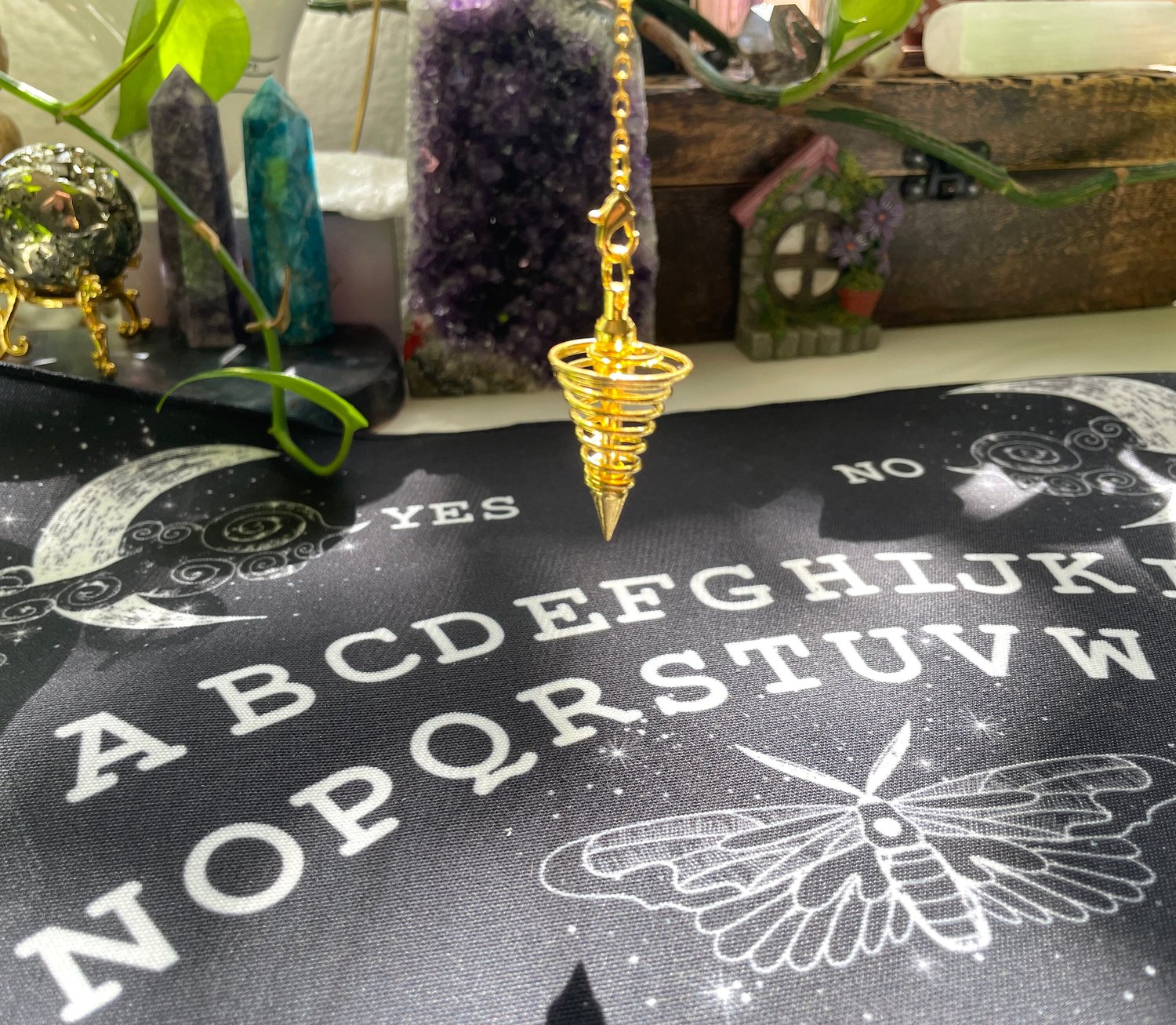 This one of a kind Ouija casting cloth is versatile for casting! It's also easy to fold up to take as a travelling altar for yourself or to use with clients.