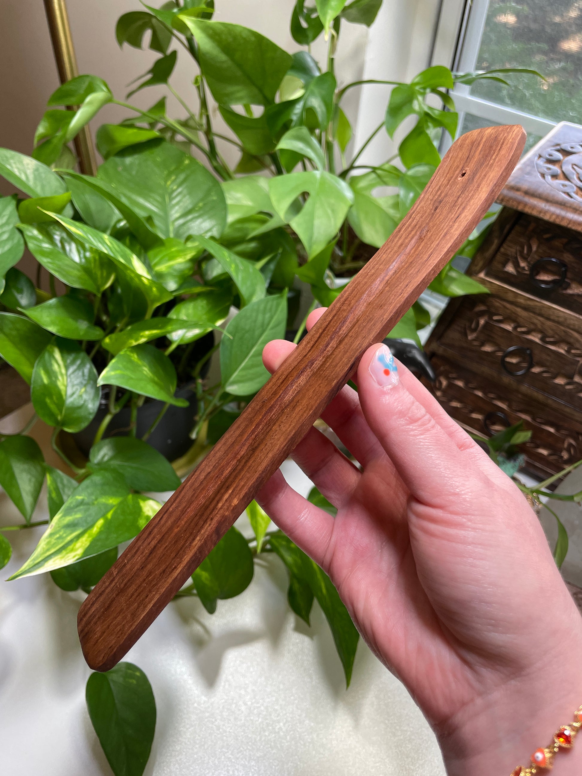 Don't let you incense ash get all over your surface! Keep it contained with this simple acacia wood incense burner.