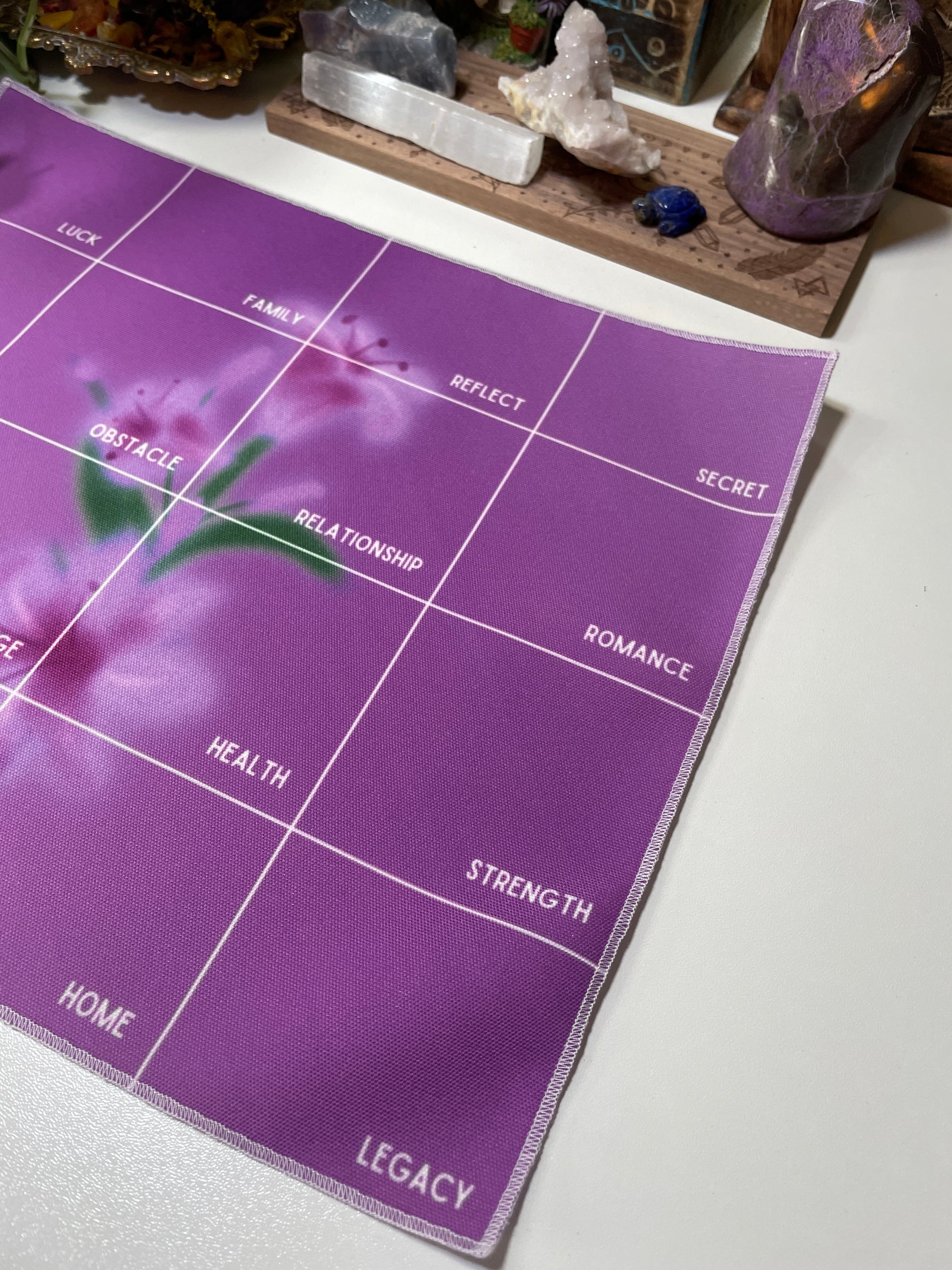This cloth can be used with charms (sold separately), pendulums, runes, crystals or any other metaphysical/spiritual/divination tool.