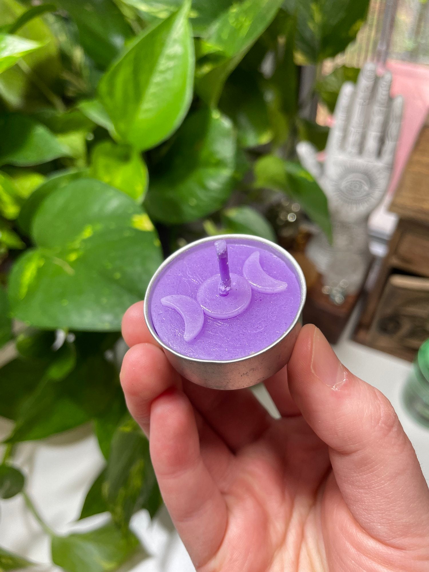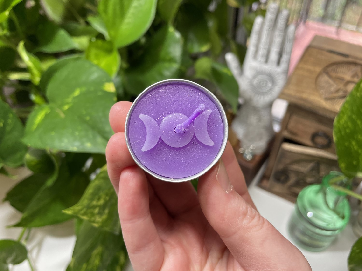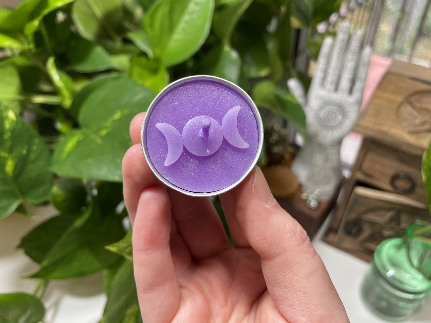 This listing is for (1) PC Purple Triple Goddess Tea Light Candle