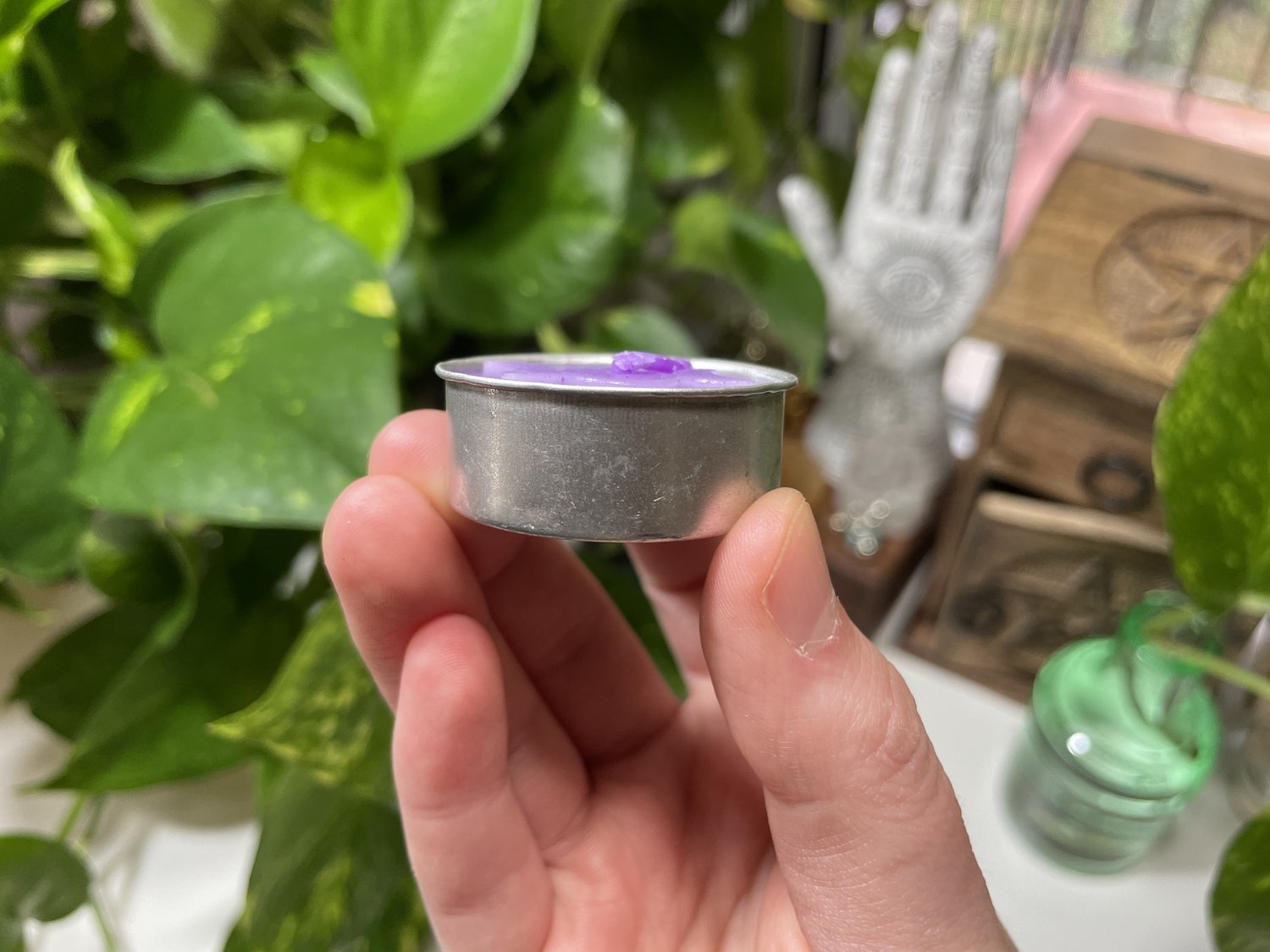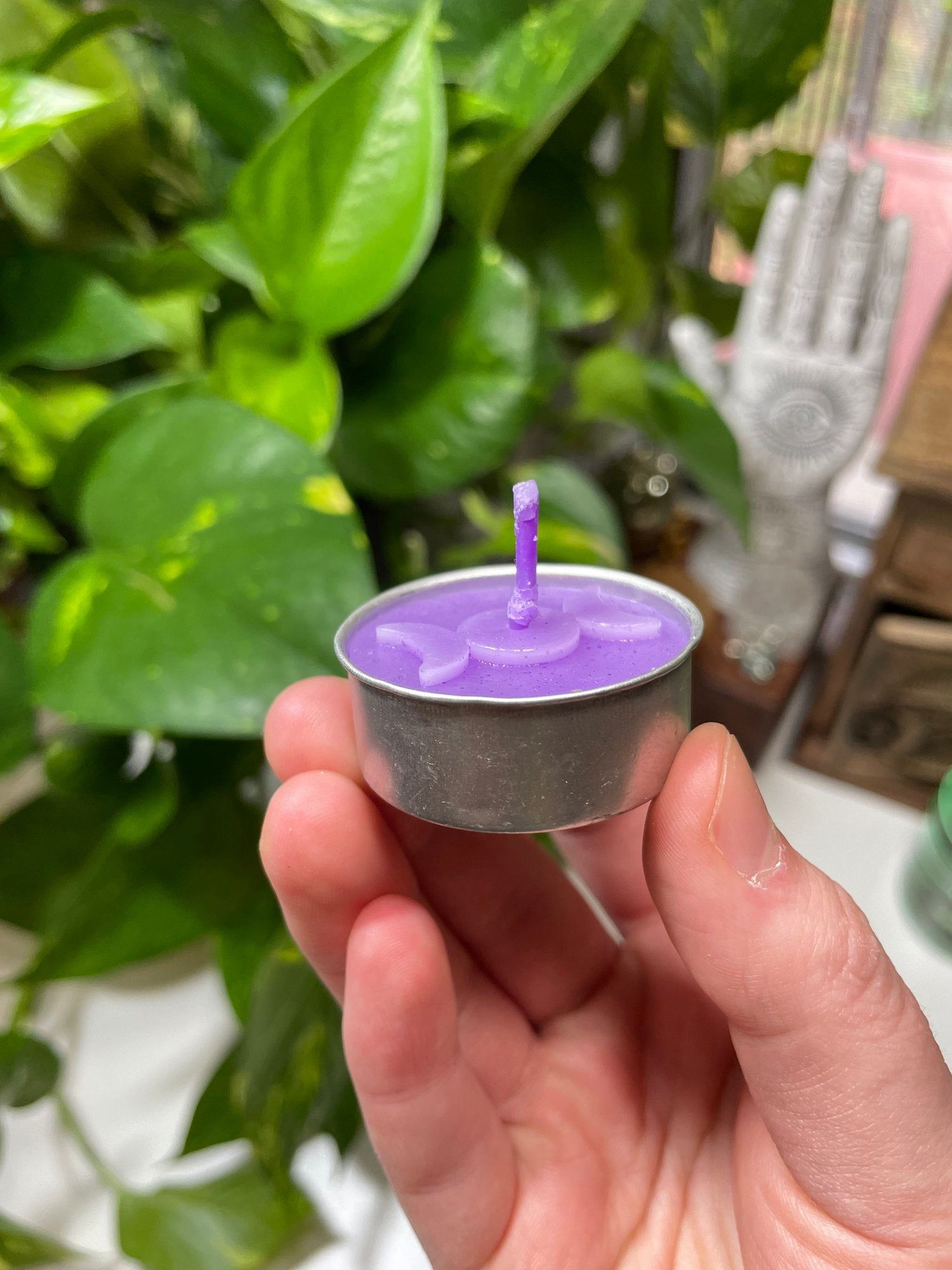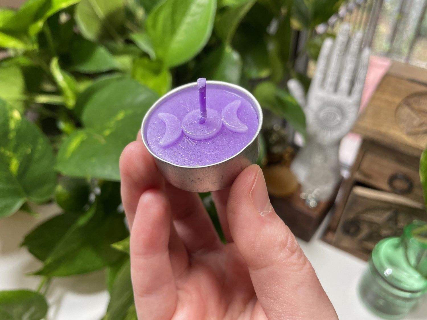 This listing is for (1) PC Purple Triple Goddess Tea Light Candle