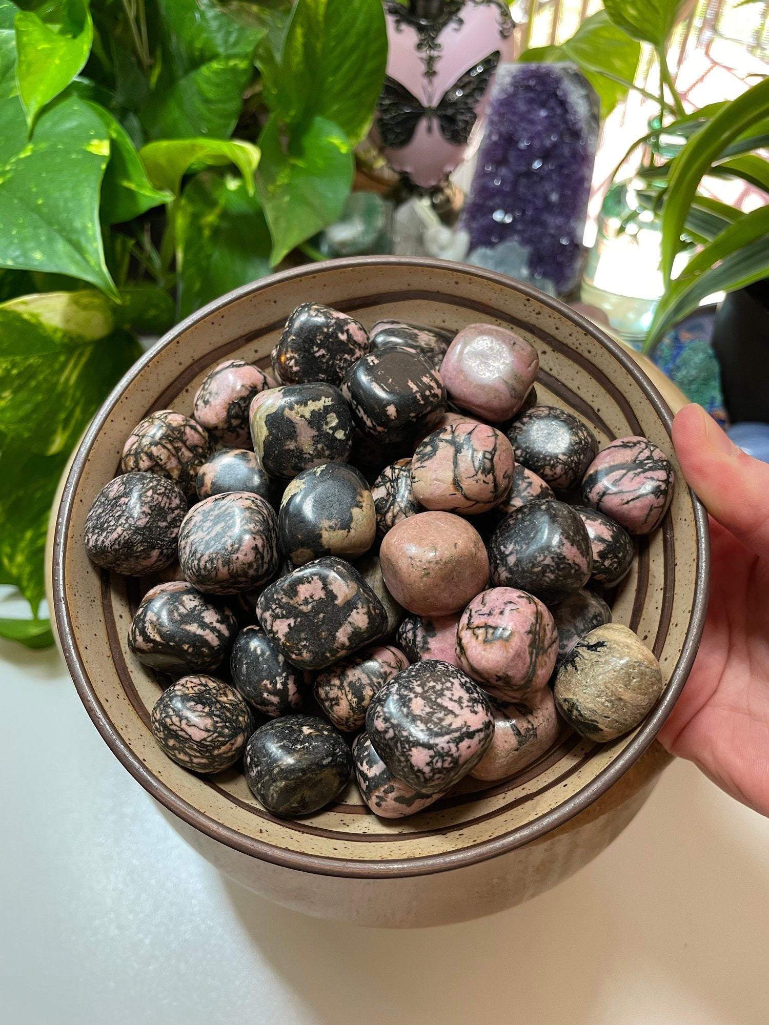 Rhodonite is an amazing stone for connecting with your Heart Chakra and it helps to amplify your self-love, romantic connections, friendship, and unity with others.