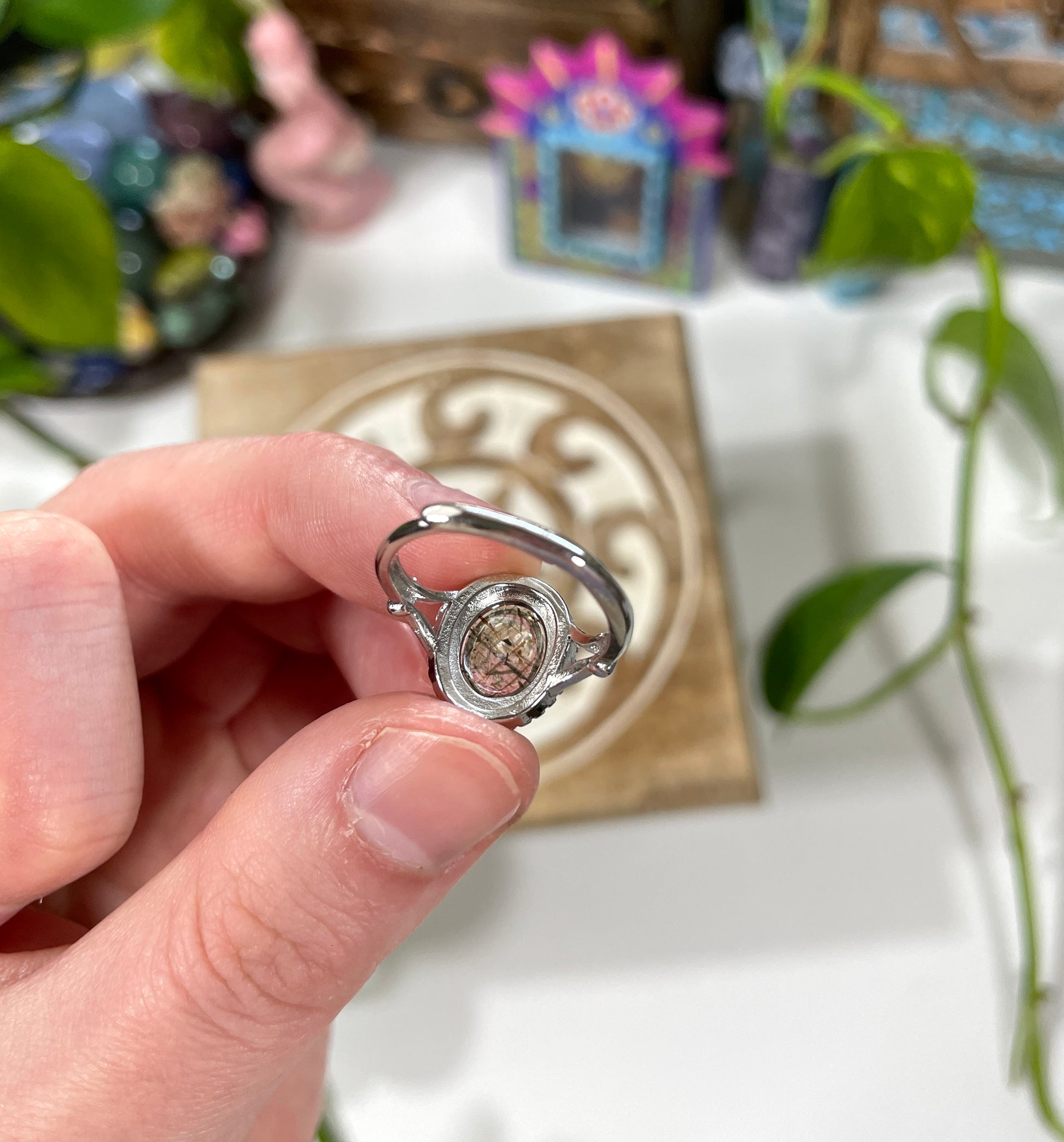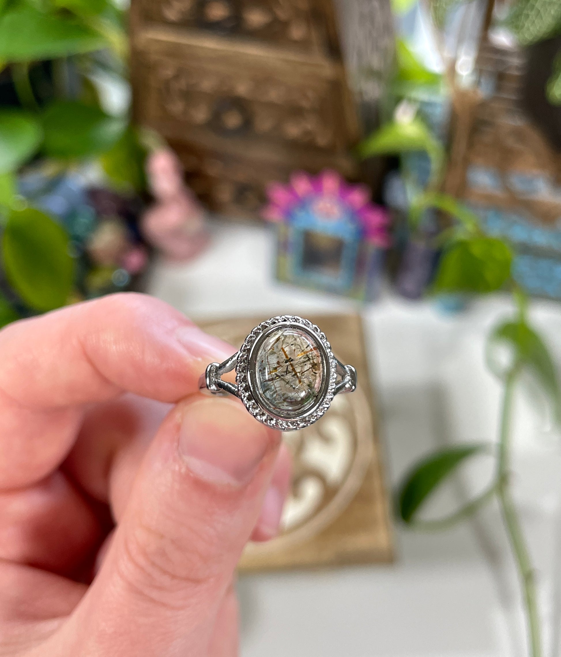 Golden Thread Rutilated Quartz Crystal Ring