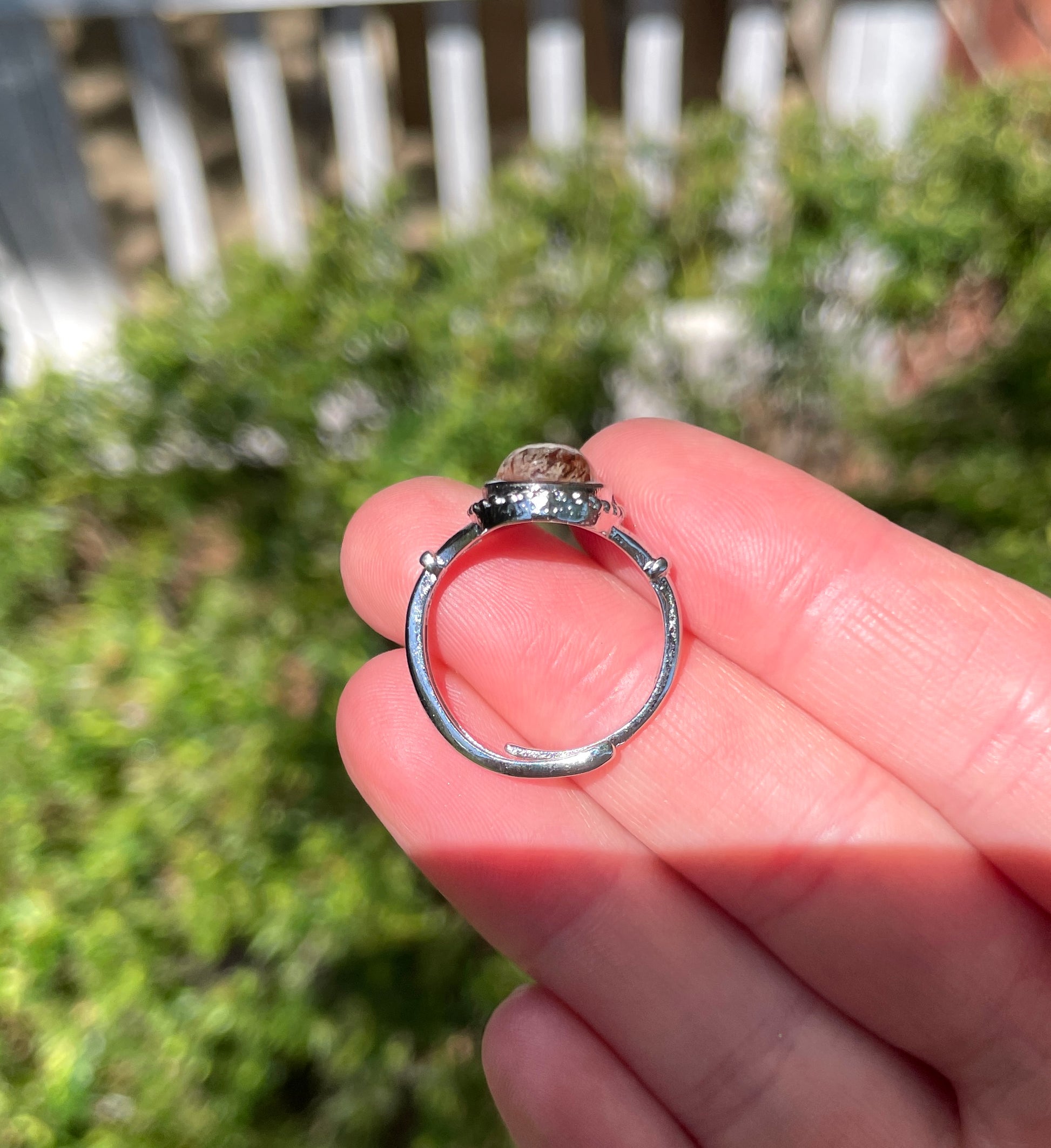 Adjustable open band fits most US 6-9 fingers (nickel-free and lead-free)