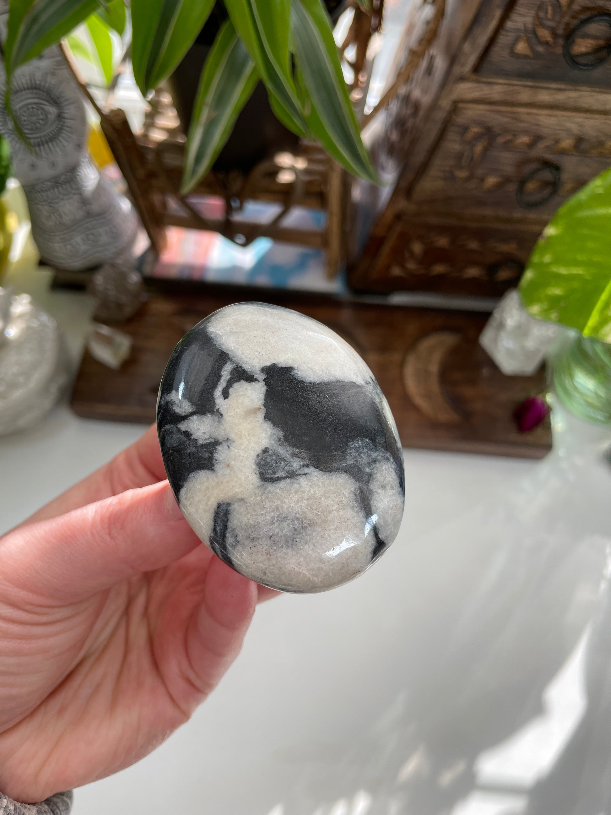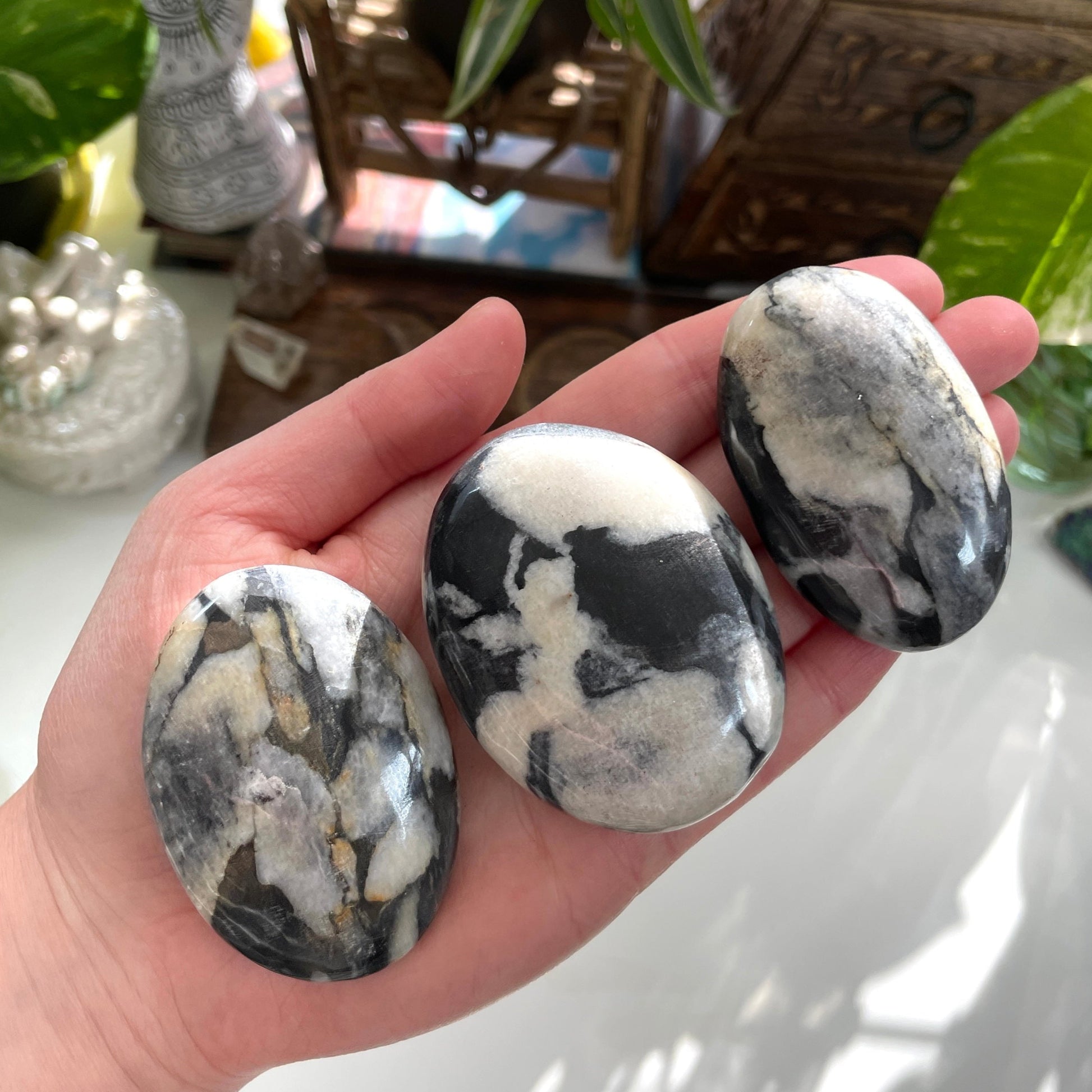 I absolutely LOVE these Shell Jasper palm stones. I'm a true sucker for Jasper, I always love it. It's so unique and each piece is just stunning. These palm stones are gorgeous. They have small bits of yellow in them too which I think is most likely caused by inclusions of limonite.