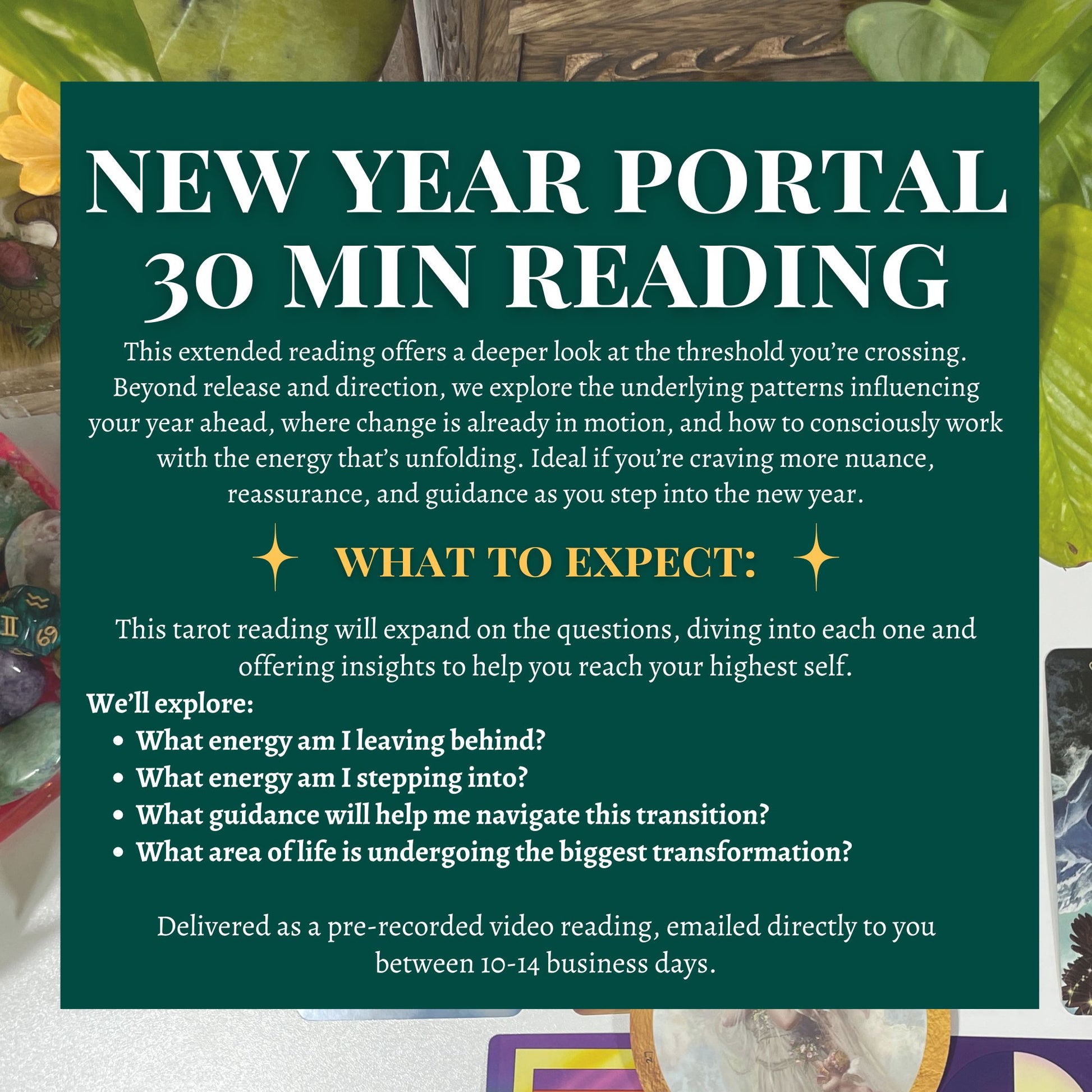 🔮 Receive a personalized New Year tarot reading focused on reflection, release, and the energy you’re stepping into for the year ahead.