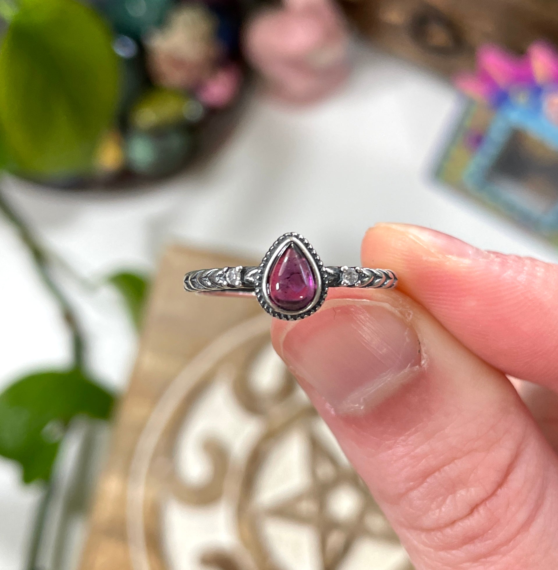❤︎ Hand-cut 8 × 6 mm pear-shaped magenta cabochon