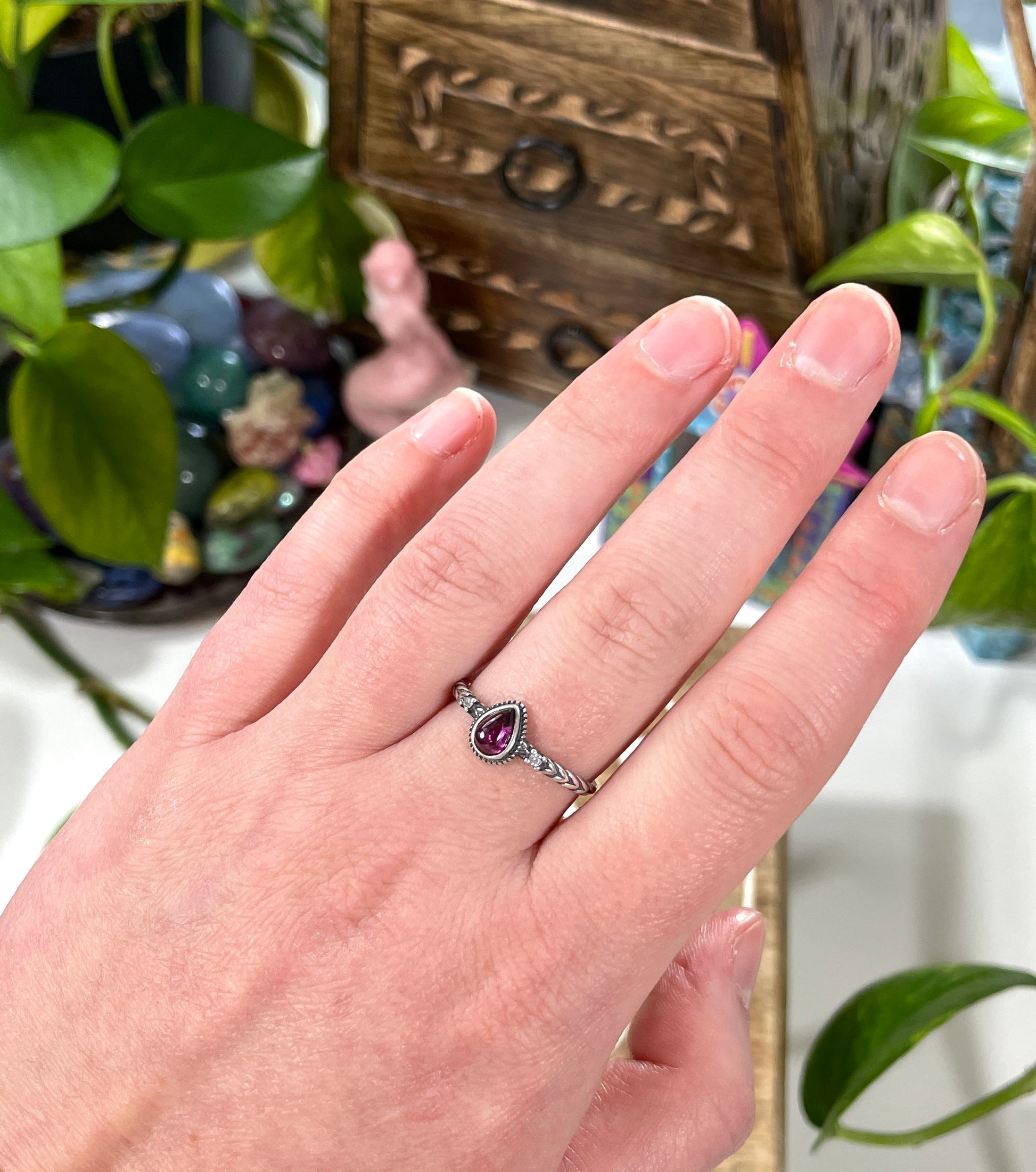 Garnet has been the fire-keeper of the gem world since antiquity. It works to amp up your courage, ground the Root chakra, and even protects travelers by night. When trace minerals shift its hue from deep red to vivid plum, you get Purple (Rhodolite) Garnet.